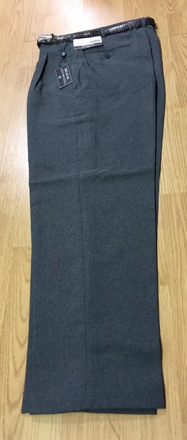 MEN'S HEATHER GRAY PLEATED DRESS PANTS SLACKS TROUSERS BELT CUFFED BOTTOMS NEW