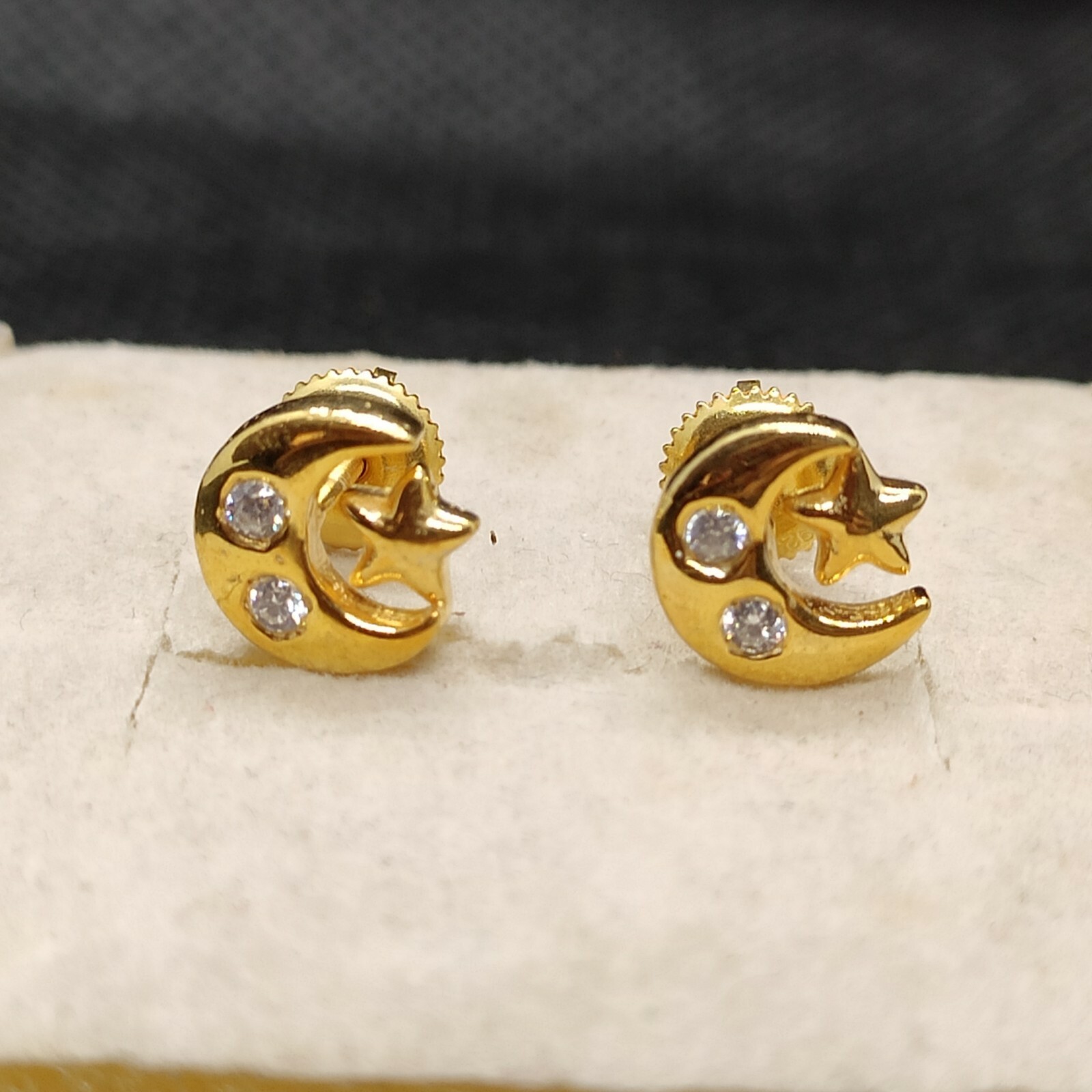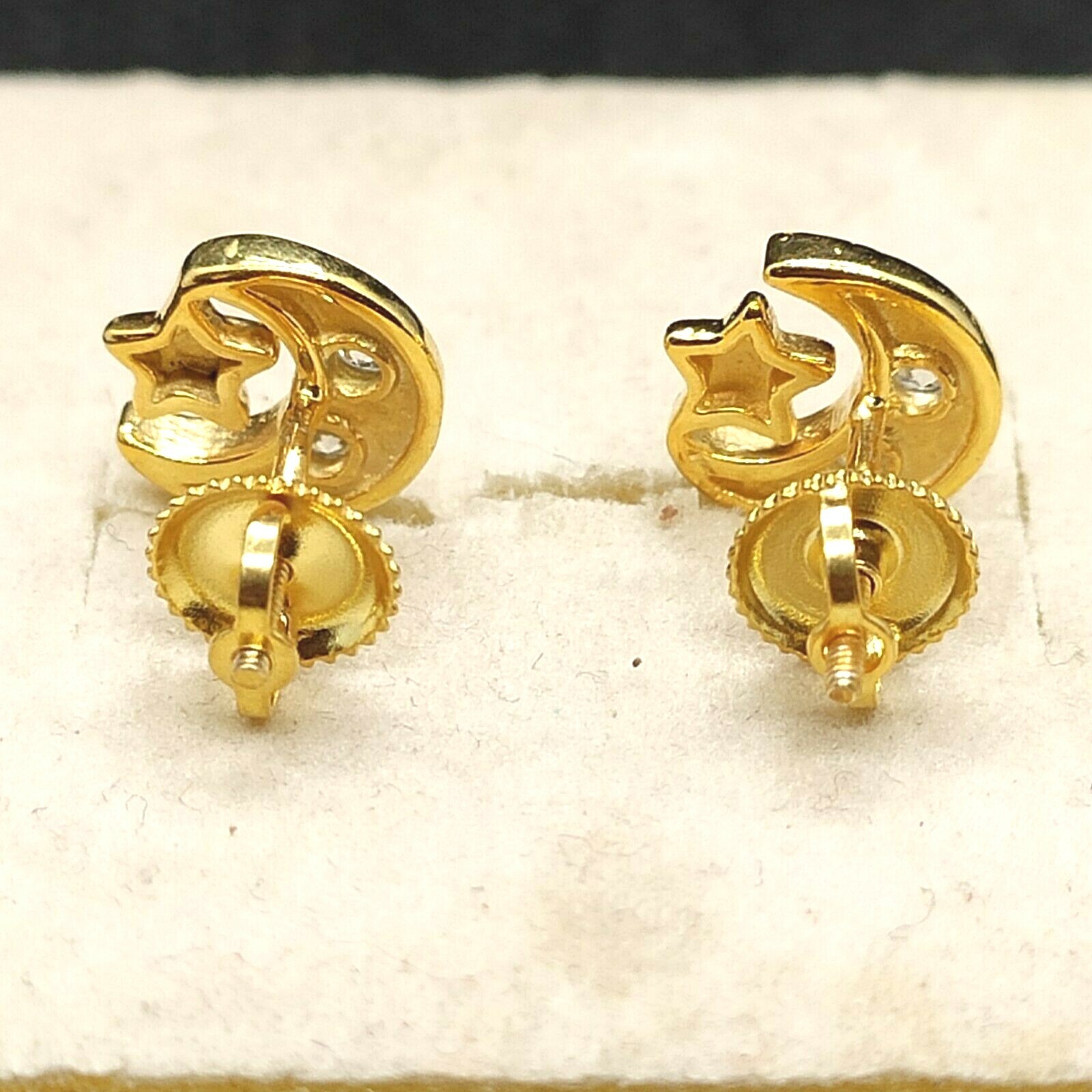 14k Yellow Gold Plated CZ Moon Star Children Screw Back Baby Girls Earrings