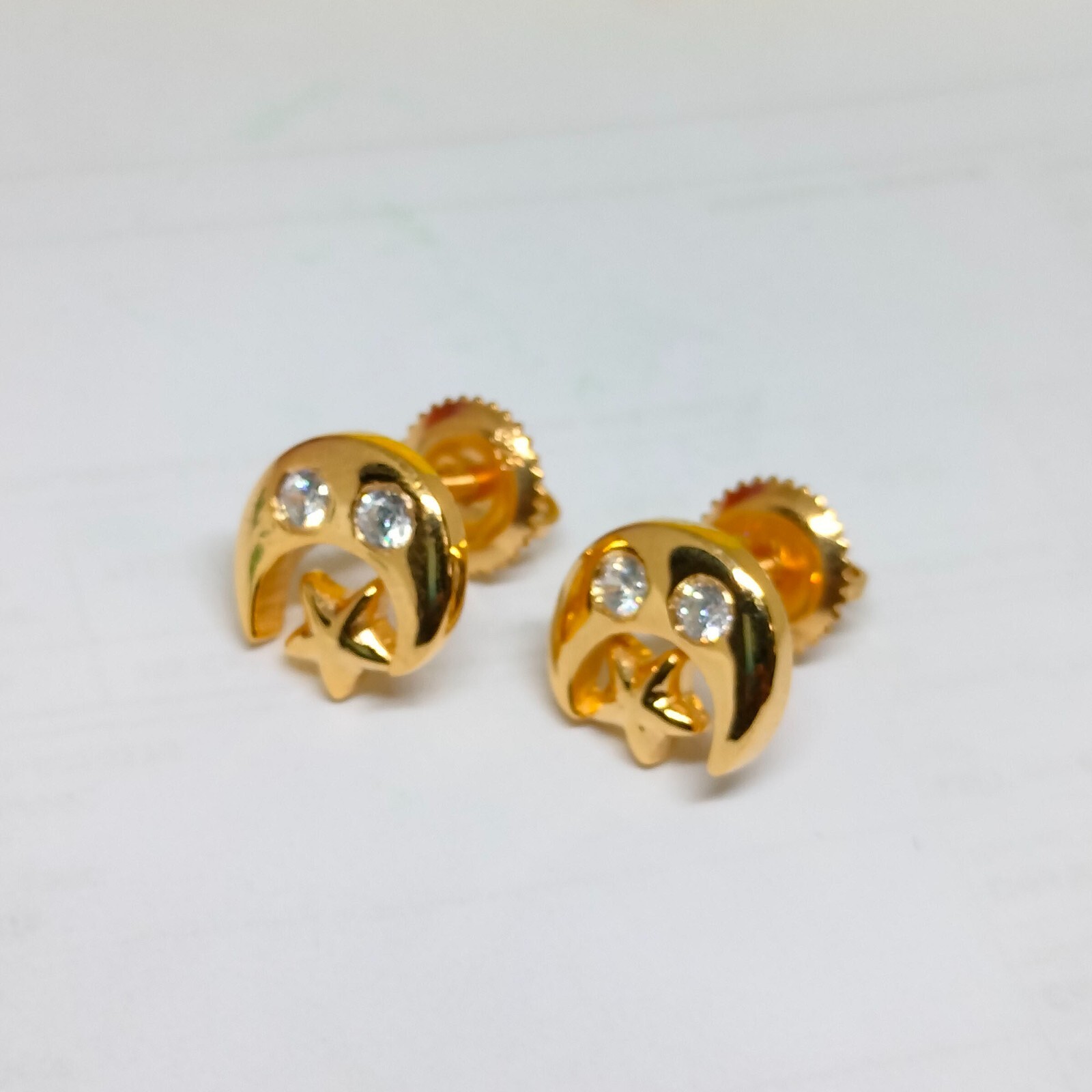 как выглядит 14k Yellow Gold Plated CZ Moon Star Children Screw Back Baby Girls Earrings фото