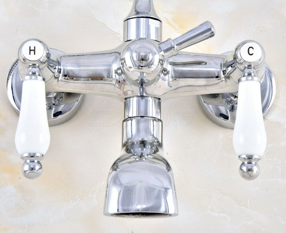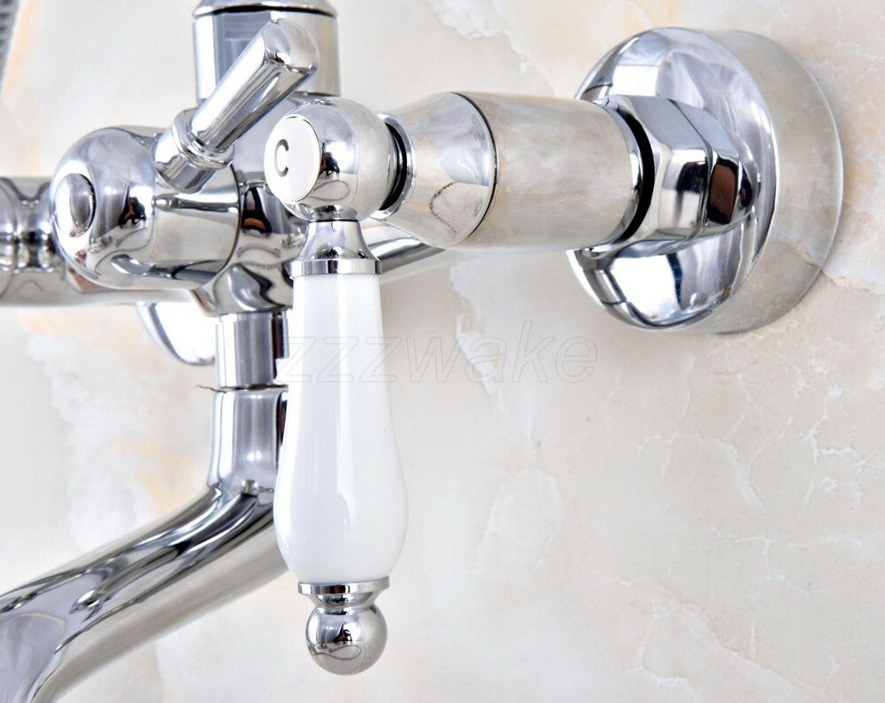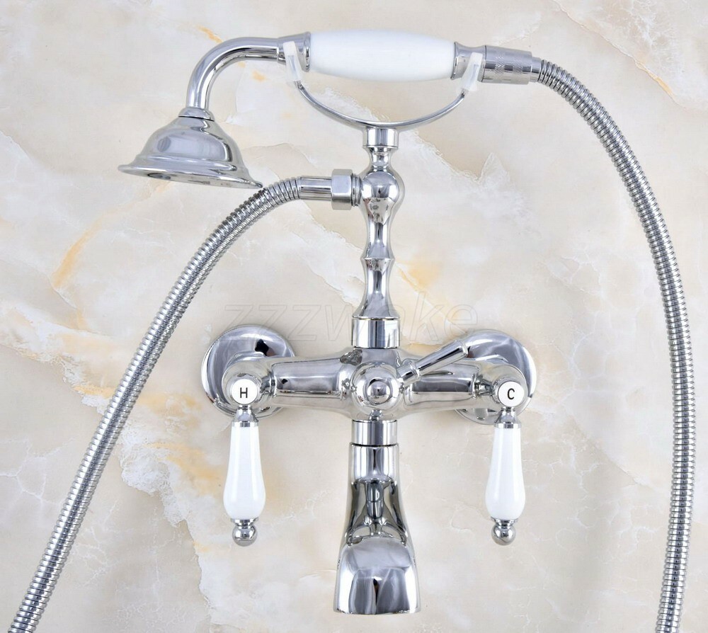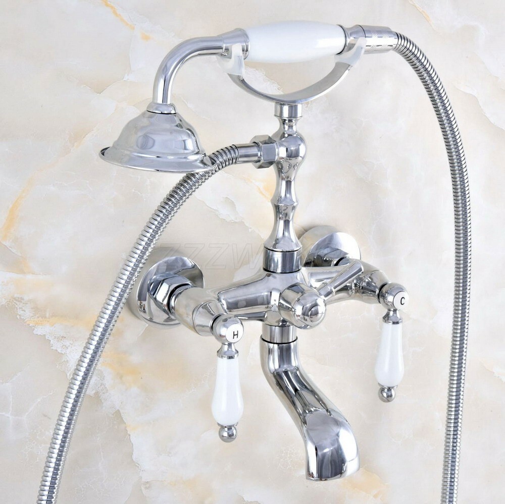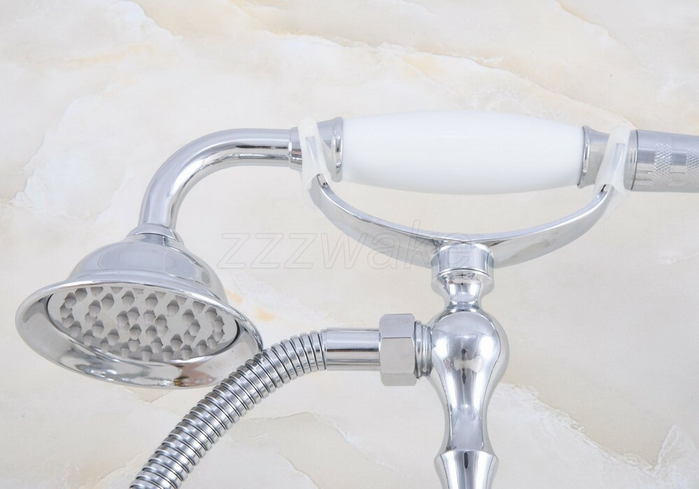 Polished Chrome Bathtub Clawfoot Faucet Mixer Tap Telephone Handheld Shower