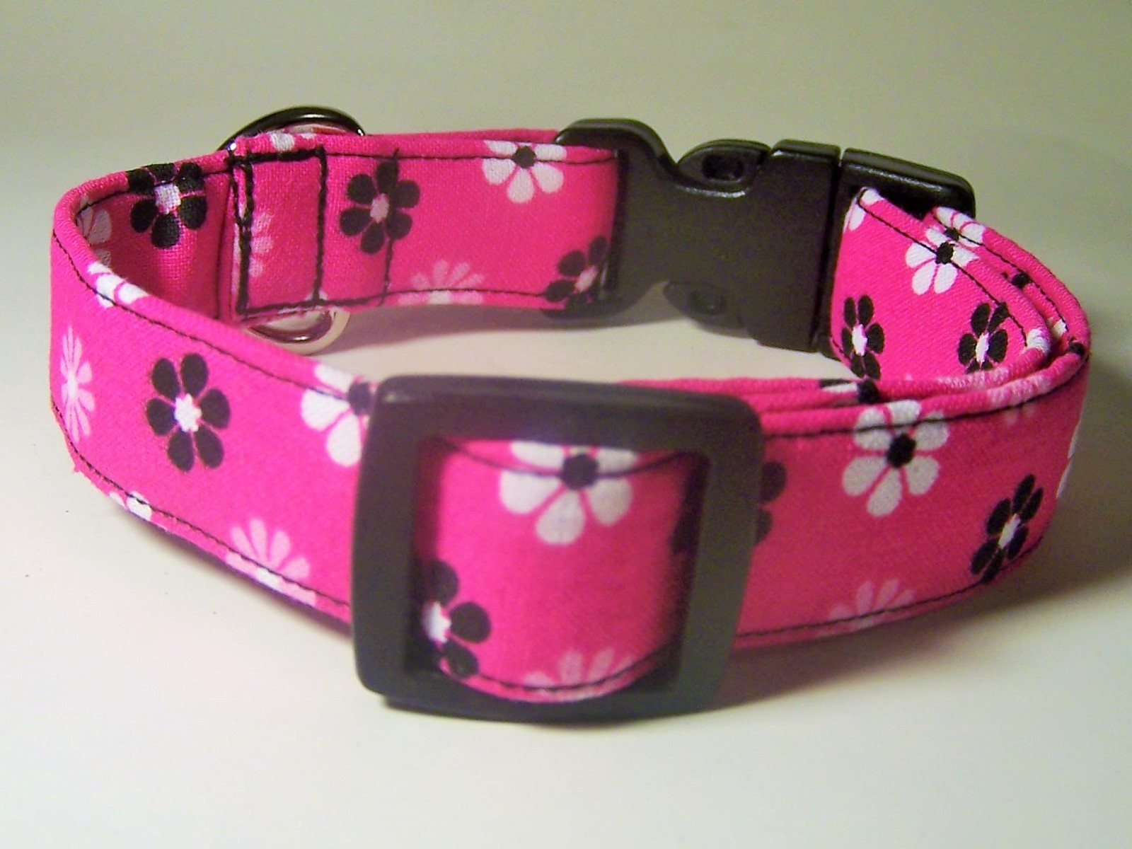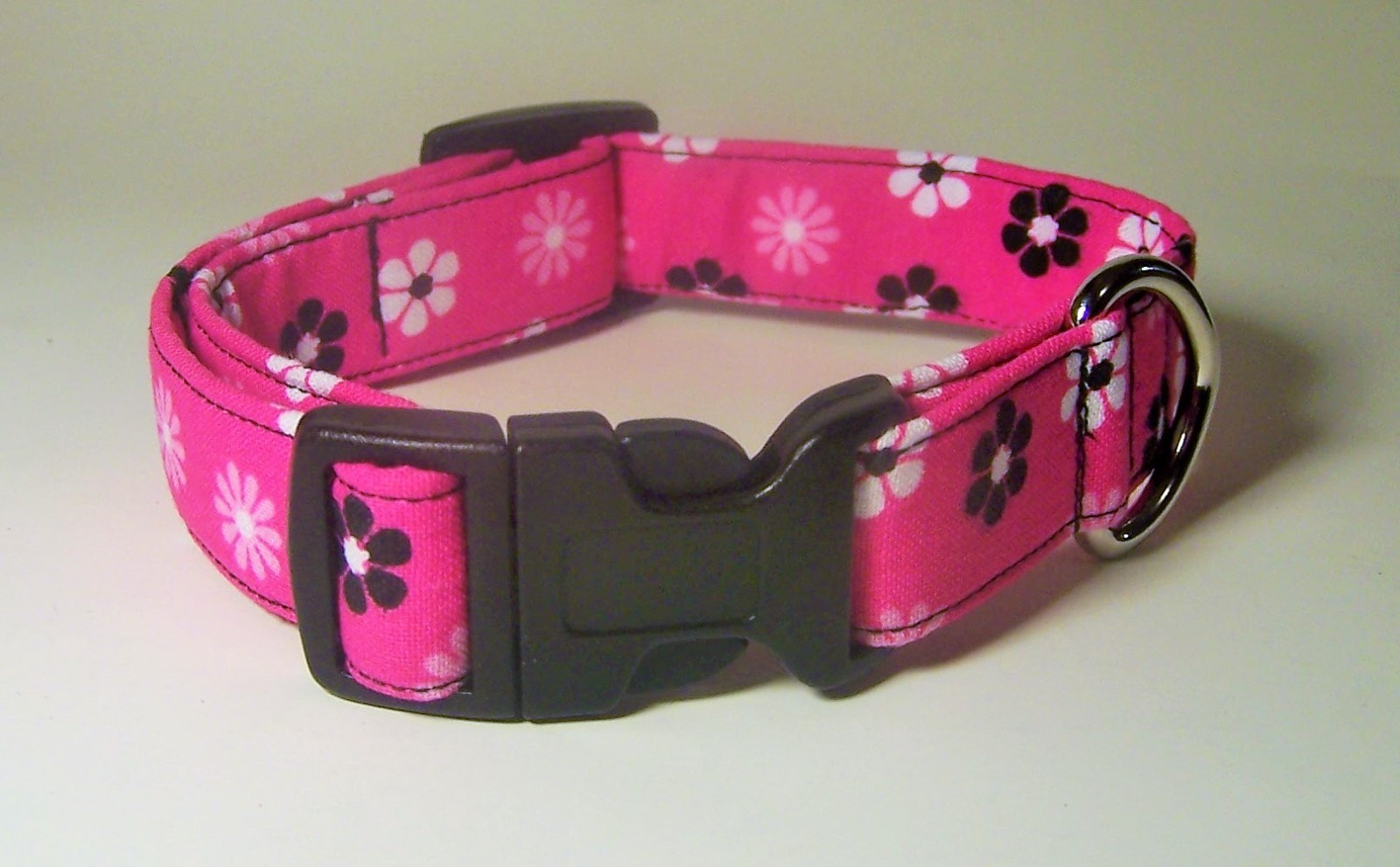 Wet Nose Designs Colorful Black and Pink Flowers Dog Collar Spring Time