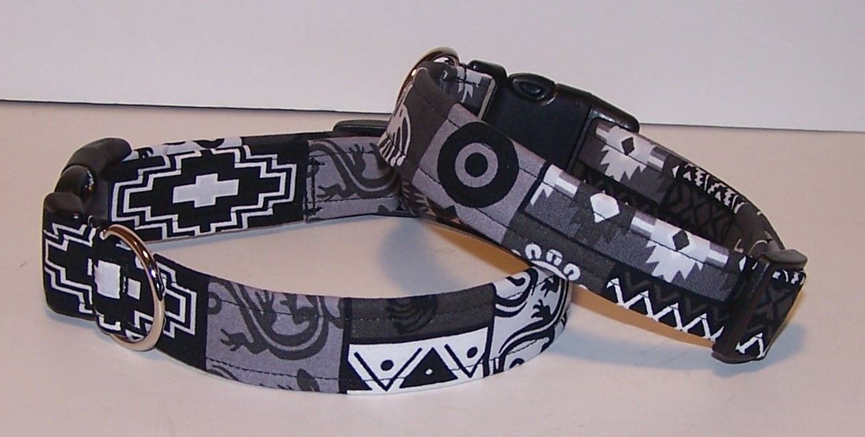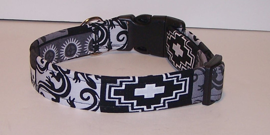 Wet Nose Designs Gray Black Southwest Aztec Dog Collar Tribal Gecko Western