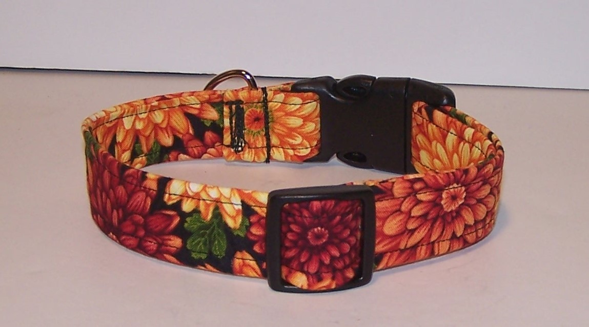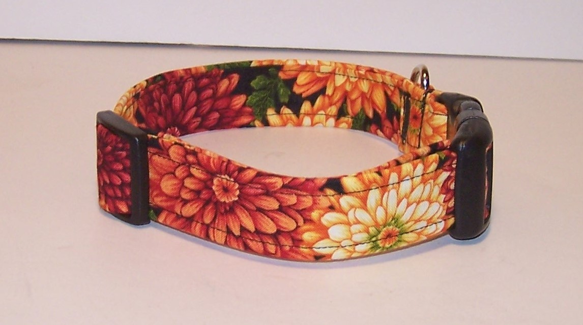 Wet Nose Designs Colorful Fall Mums Dog Collar Chrysanthemums Floral Flowers