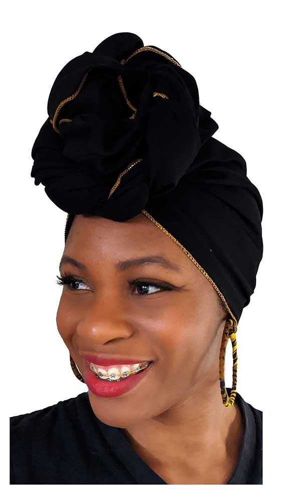 Black African Head Wrap with Gold Trim One size , scarf, 100 Cotton. DP3776H
