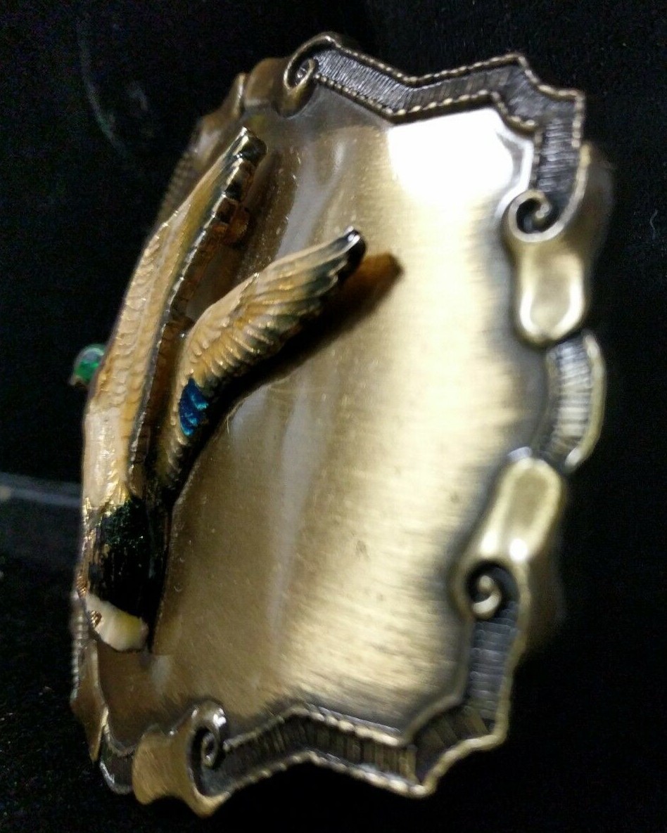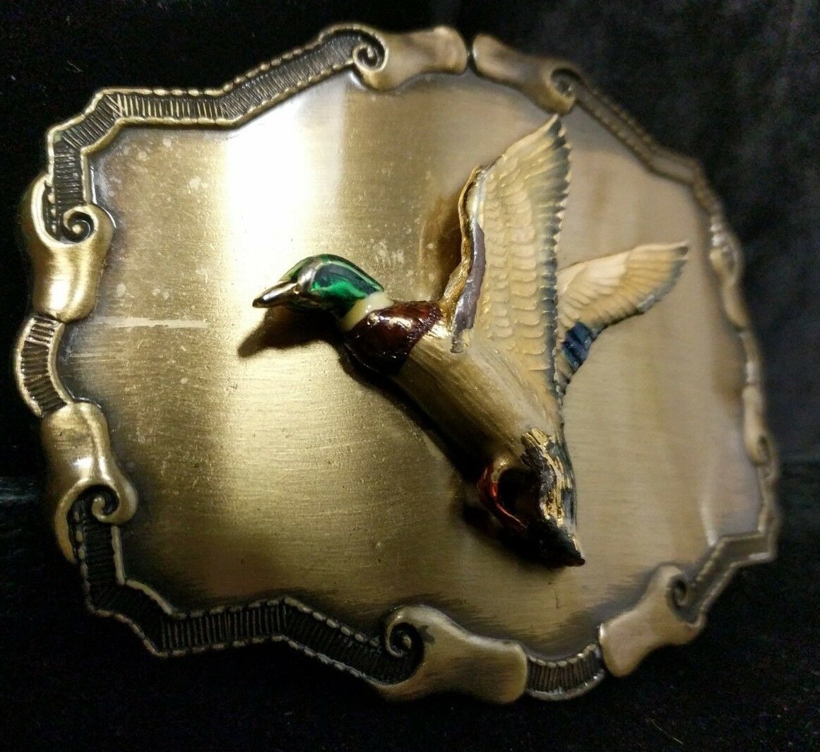 как выглядит Fashionable Belt Buckle Ornate Mallard Duck Gold Tone Framed Hunting NICE фото