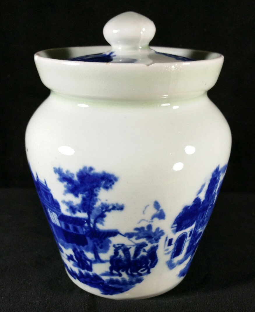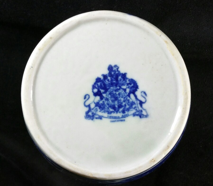 как выглядит Vintage Flow Blue English Biscuit Jar Repro By Victoria Ware Ironstone 7" GOOD фото