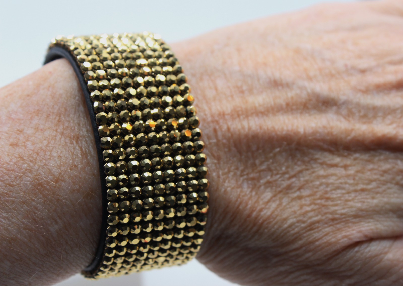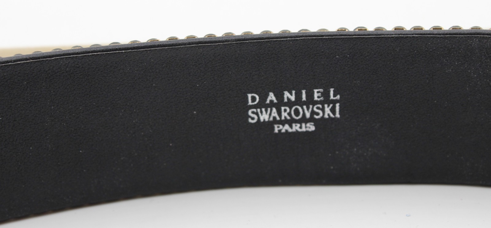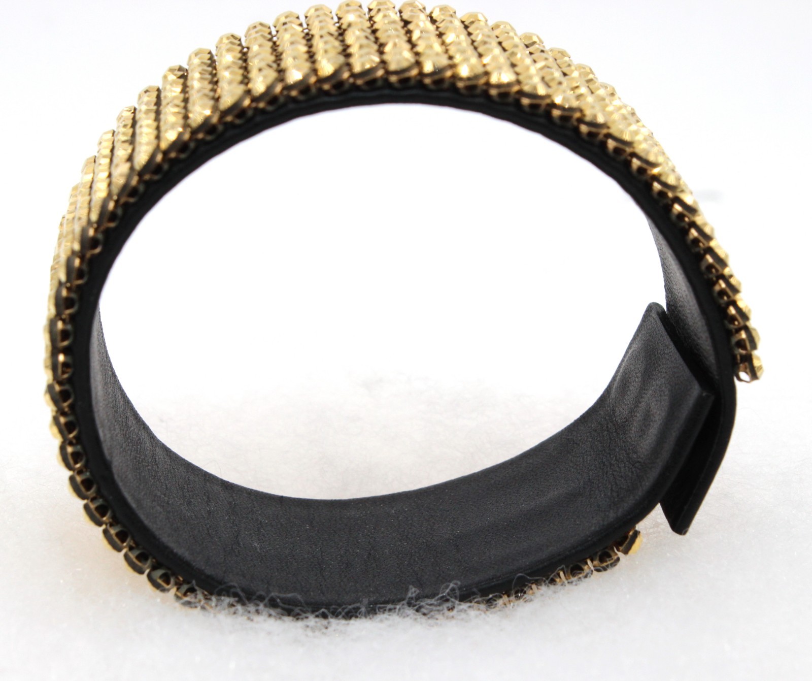 как выглядит SWAROVSKI Signed Black Leather 9 Row Gold Crystal Bracelet 7.5" New No Box фото