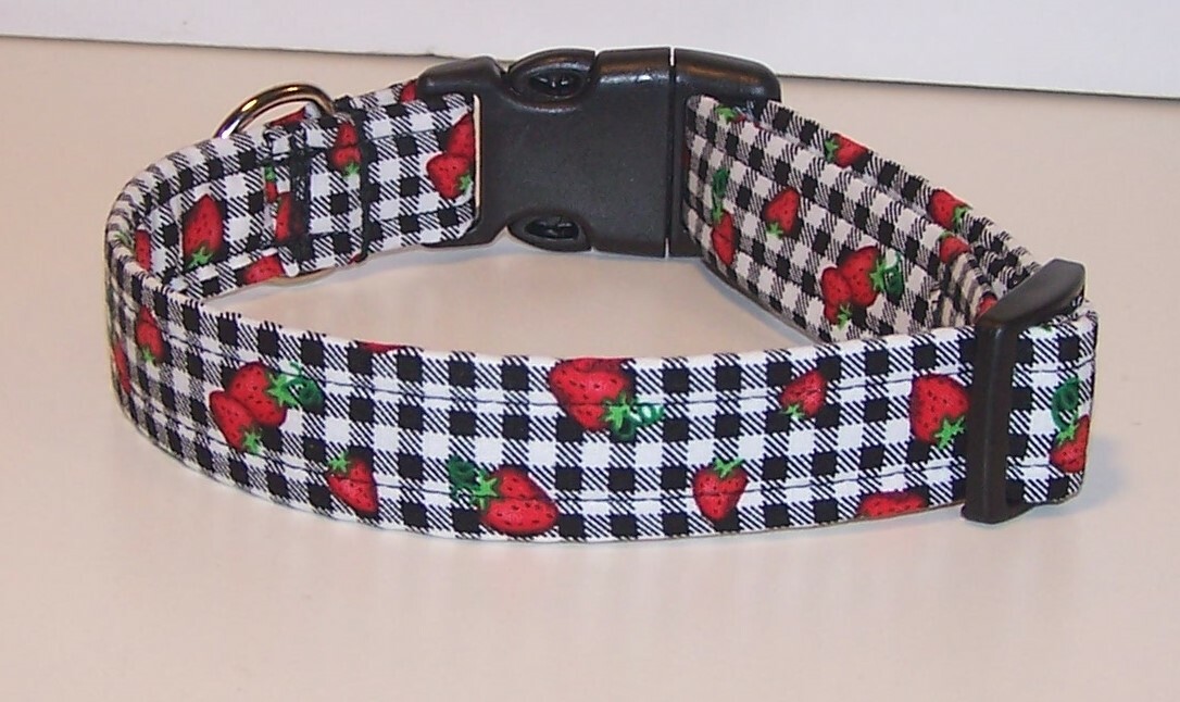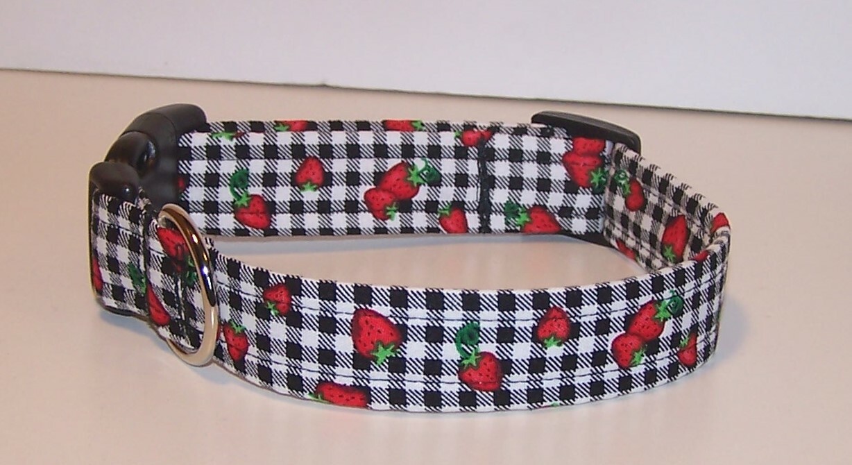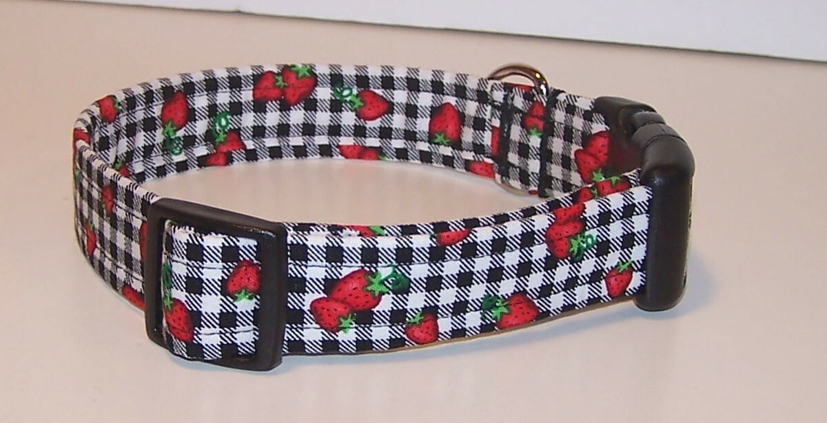 Wet Nose Designs Fancy Berry Plaid Dog Collar Strawberry Black White Plaid