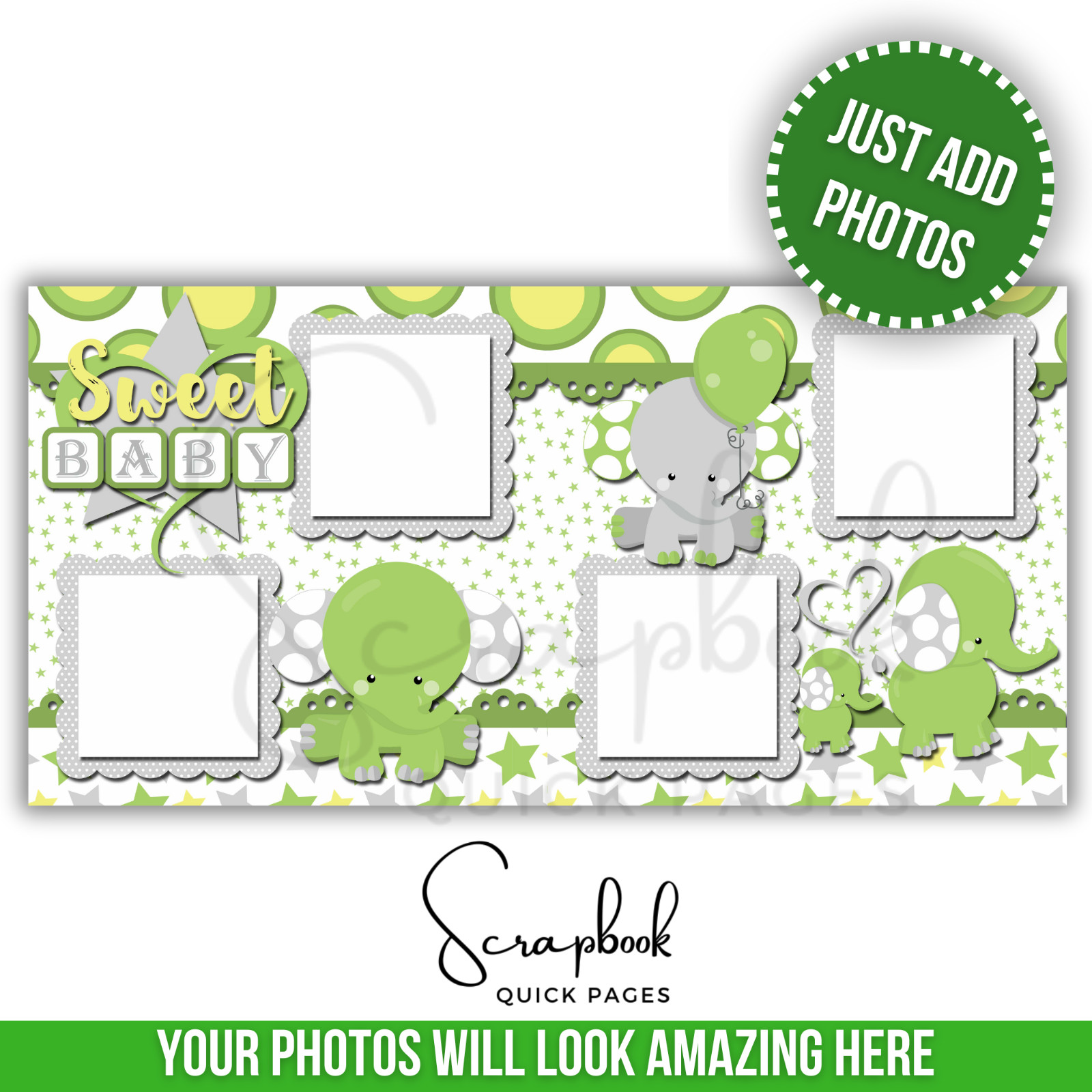 Baby Scrapbook Green Baby Shower PRINTED Premade Scrapbook Quick Pages 57