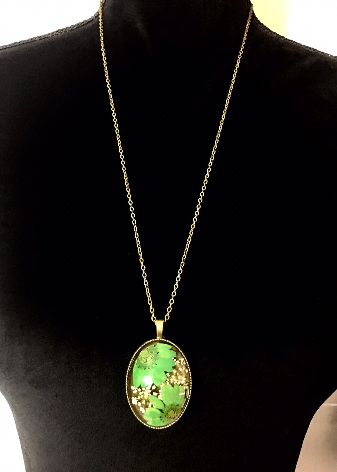 как выглядит Handmade Boho Floral Chain Necklace, Natural Real Dried Flower Pendant, Green фото