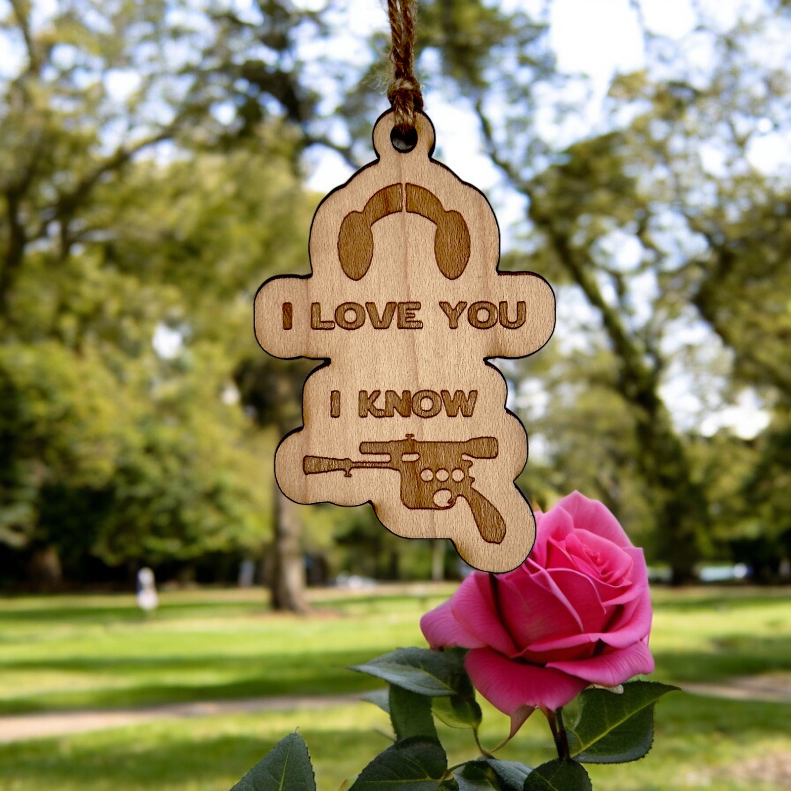Ornament - I Love You I Know - Raw Wood 3x2in