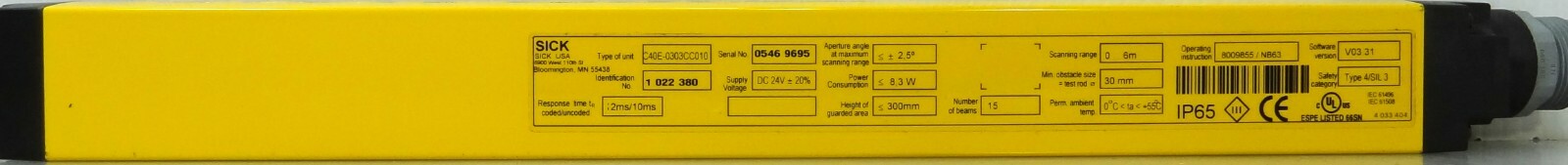 Sick Safety Light Curtain C 4000 C40E-0303CC010, 1022380