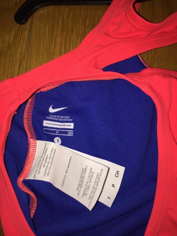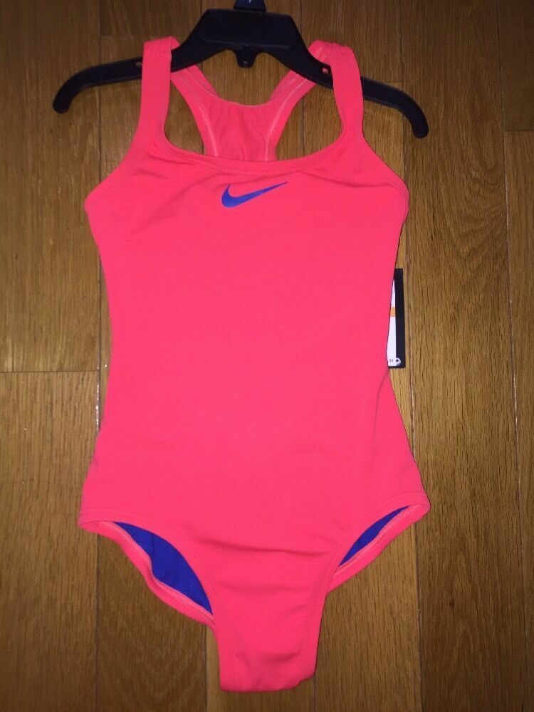 как выглядит NWT Girls NIKE Core Racerback Swimsuit One Two-Piece Cobalt Crimson 7 8 14 фото