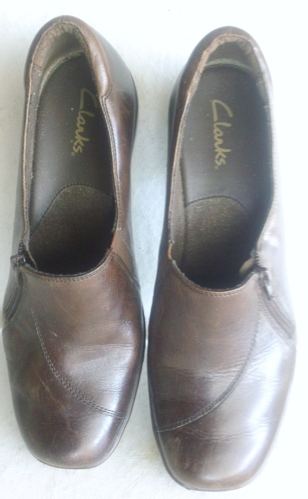 как выглядит Women s Clarks Brown Leather Side Zipper Loafer, Size 8 M фото