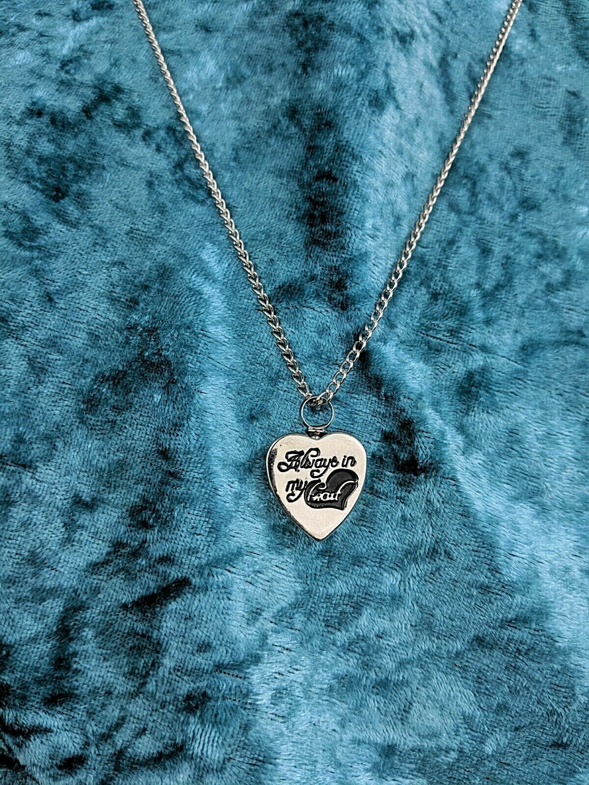 Cremation Urn "Always in my Heart" Necklace fill kt pouch Remembrance gift