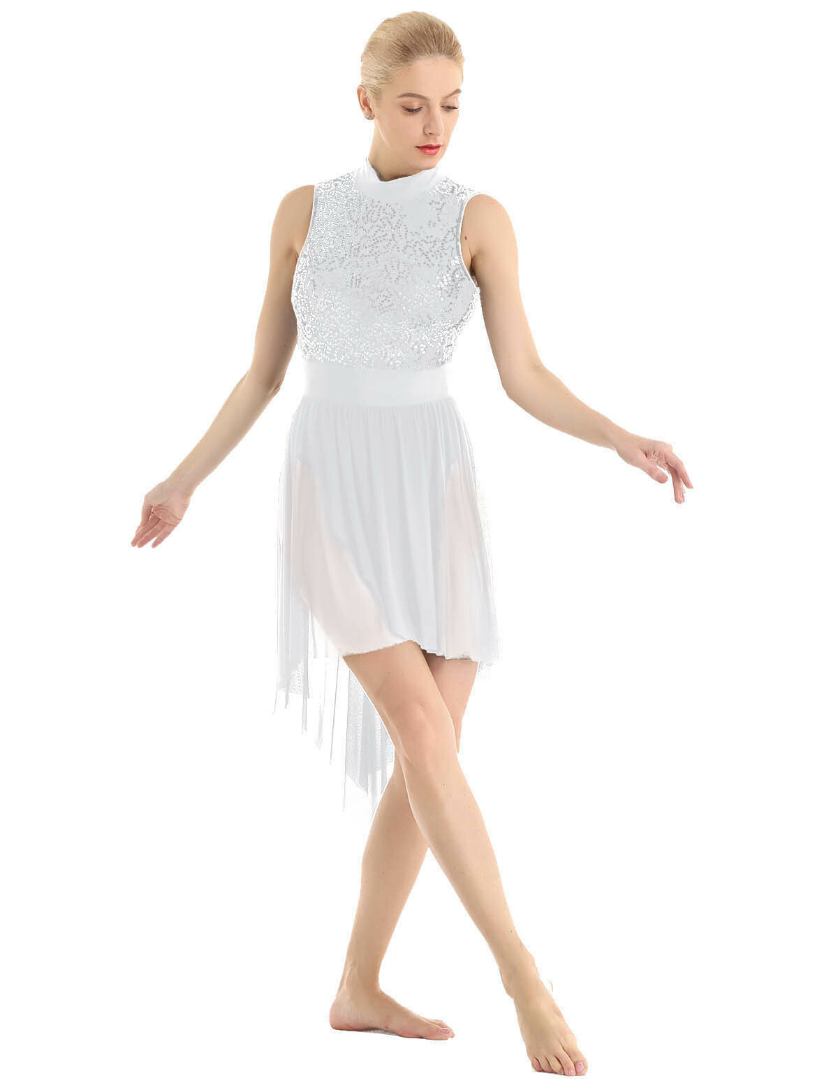 как выглядит Womens Ladies Sequins Ballet Gymnastics Leotard Costume Skating Dance Wear Dress фото
