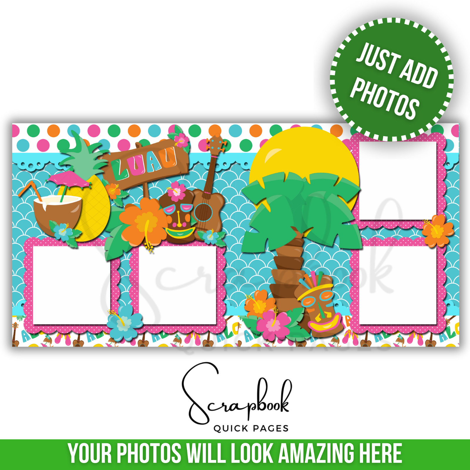 Luau Hawaii Scrapbook Beach Vacation 2 PRINTED Premade Scrapbook Quick Pages 69