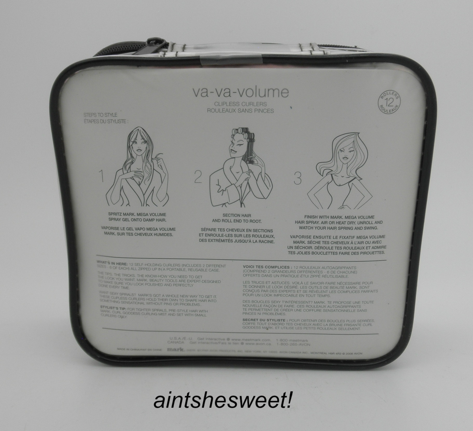 AVON Mark VA-VA-VOLUME Clipless Curler Set in reusable zip case