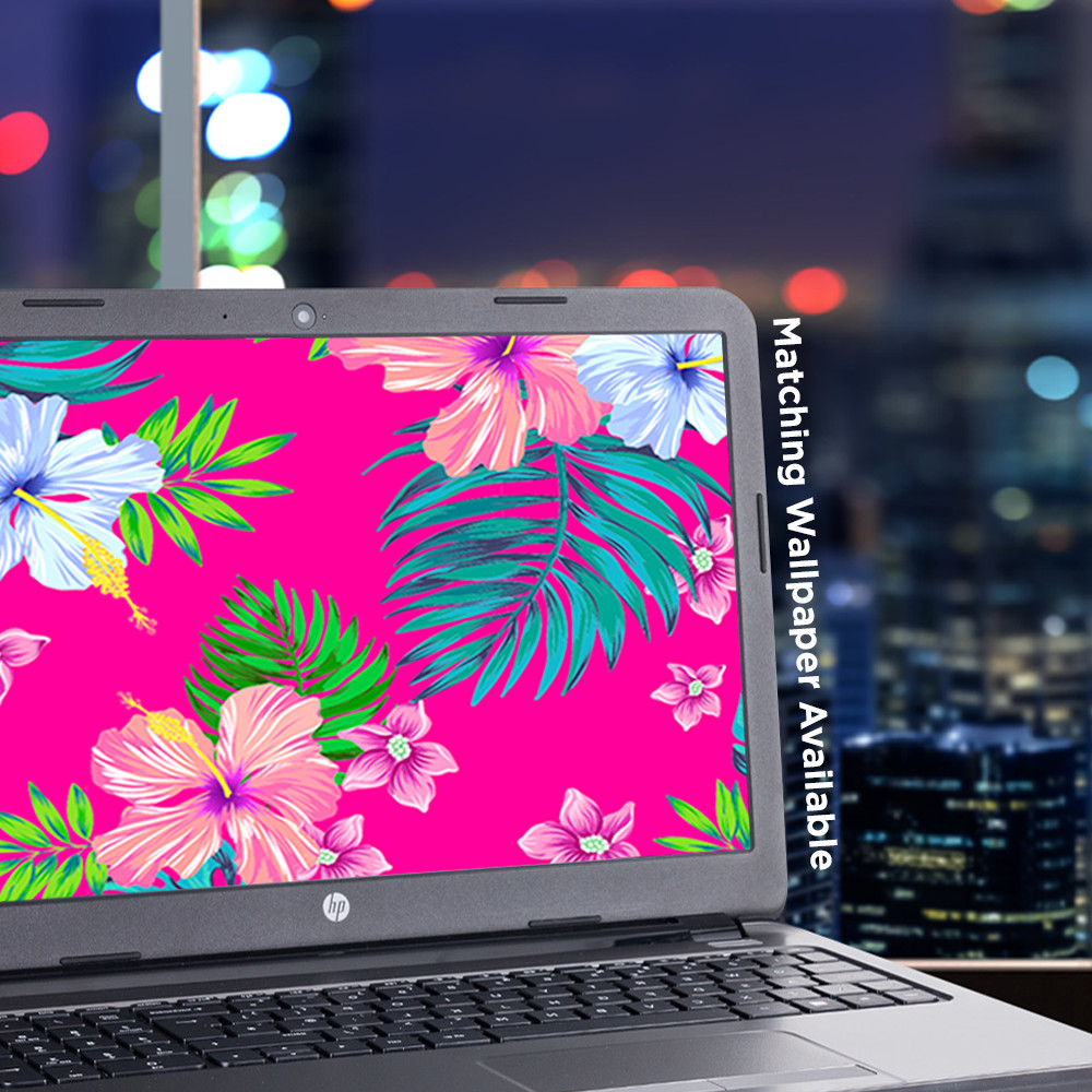 Universal Laptop Skins Wrap for 14 - Pink Neon Hibiscus Flowers