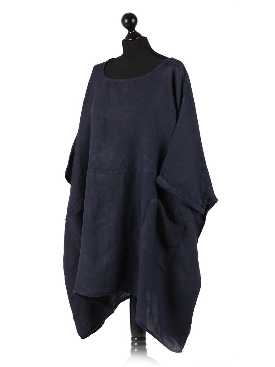 Womens Italian Linen Tunic Top Lagenlook Oversized Plain Short Sleeve Plus Size