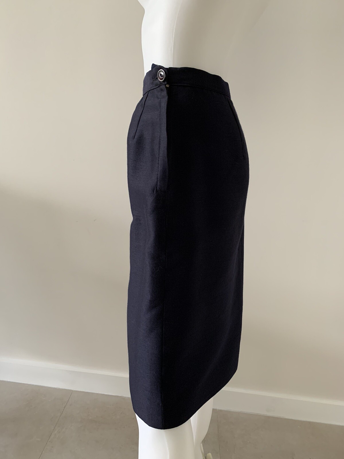 как выглядит Vintage 60s Navy Silk Wool Pencil Skirt M фото