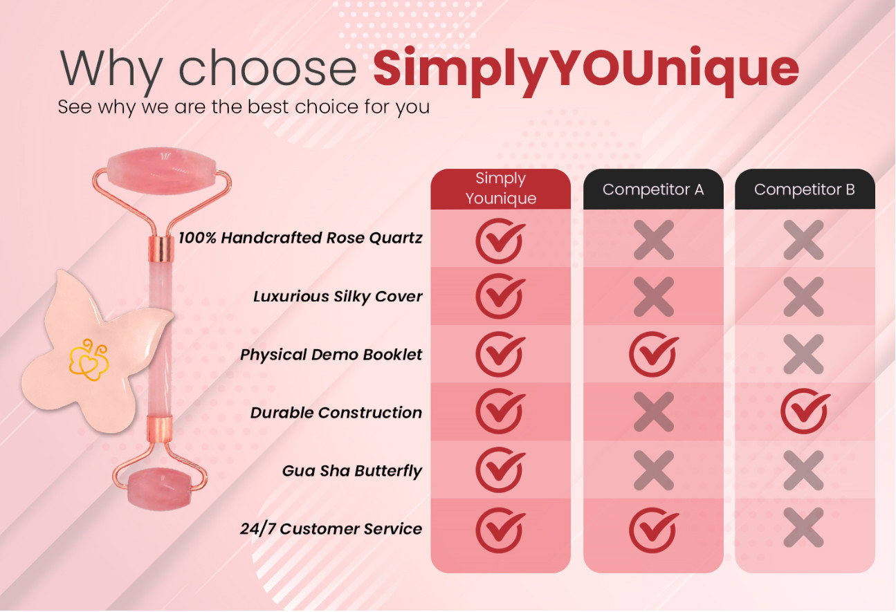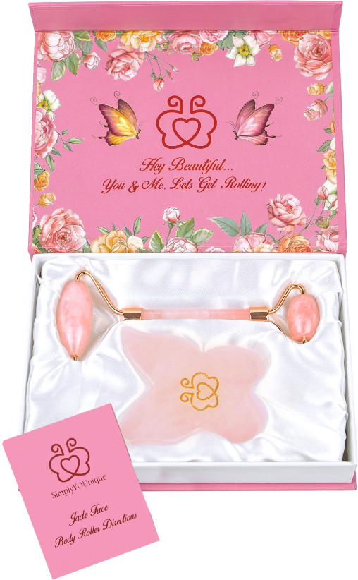 Upgraded Natural Rose Quartz Jade Roller Facial Roller Butterfly Gua Sha Set