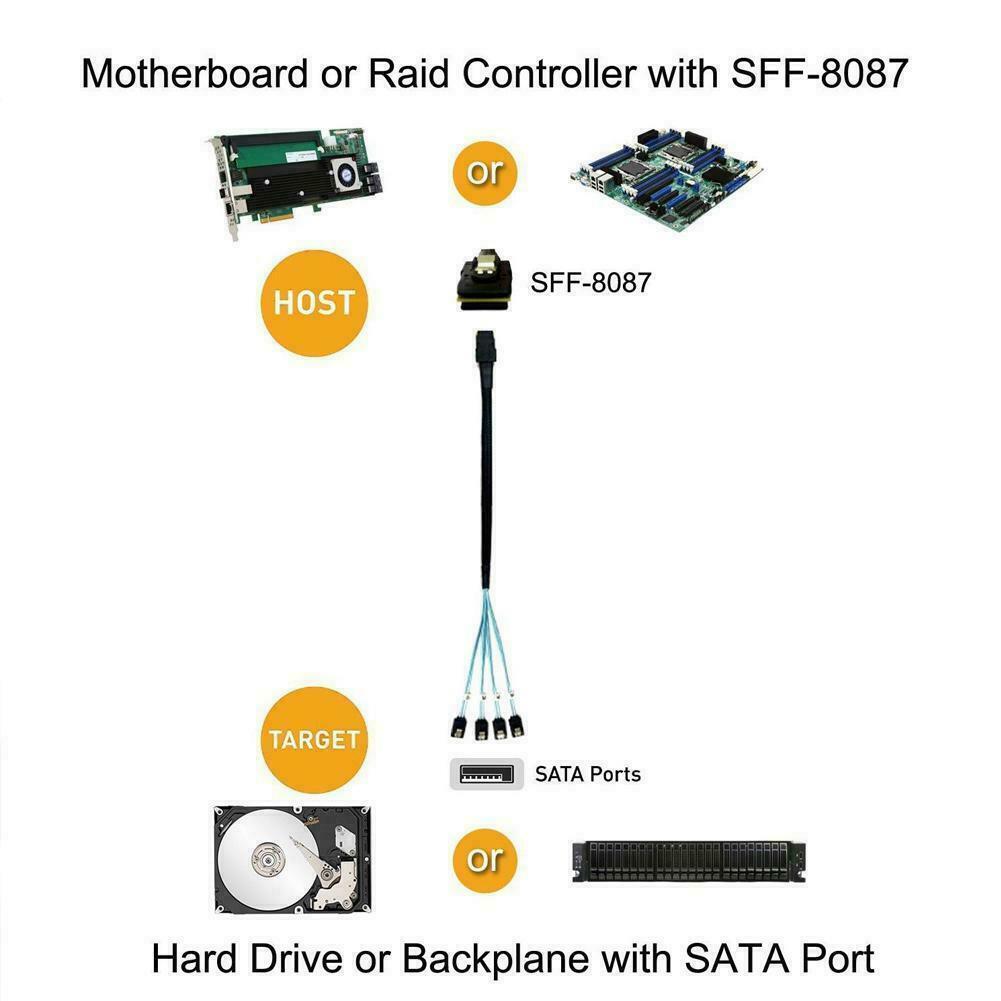 Mini SAS 36pin Power SFF-8087 to SFF-8482 w/ SATA Power Cable 3FT 100CM Ship US