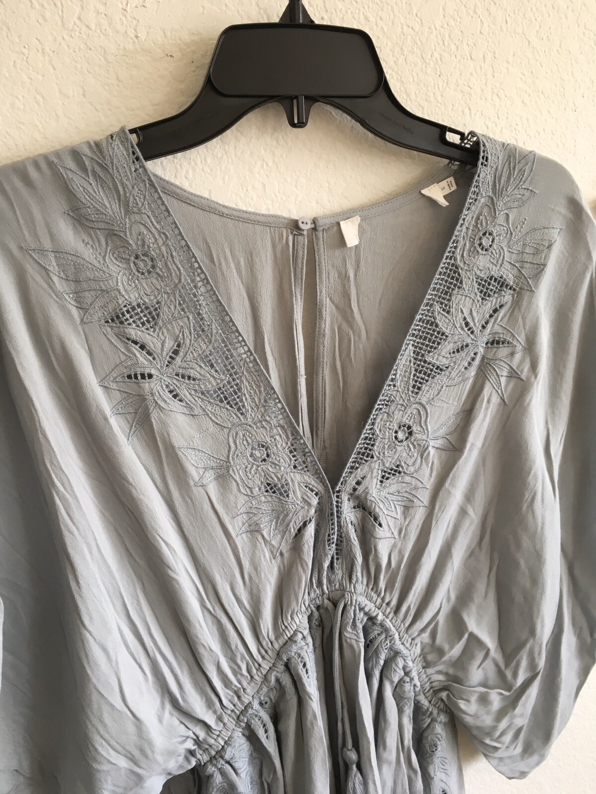 Fun Romper Slate Blue VNeck Embroidered Cutout S Boho 100 Rayon Gathered Waist