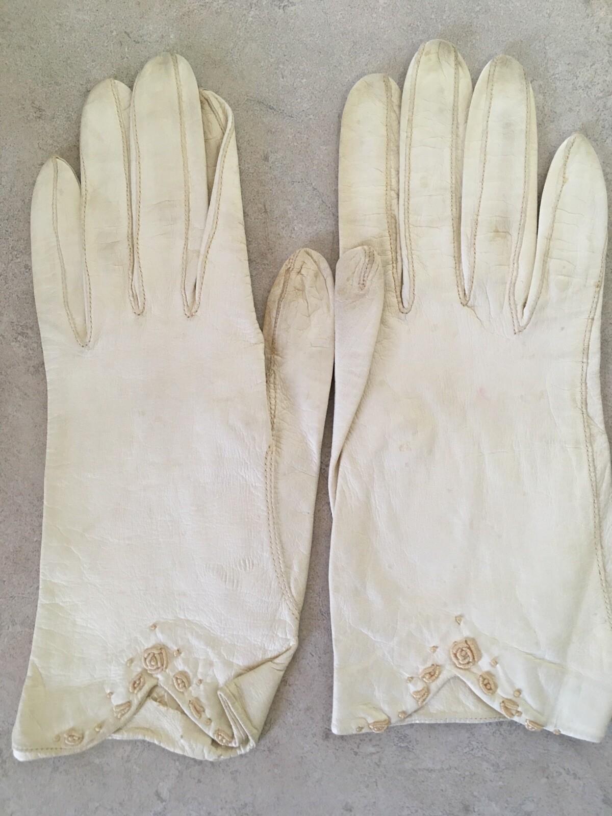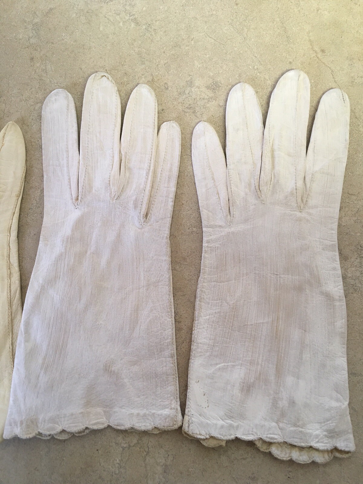 Two Pairs of Vintage Leather Gloves - Small - Cream and White