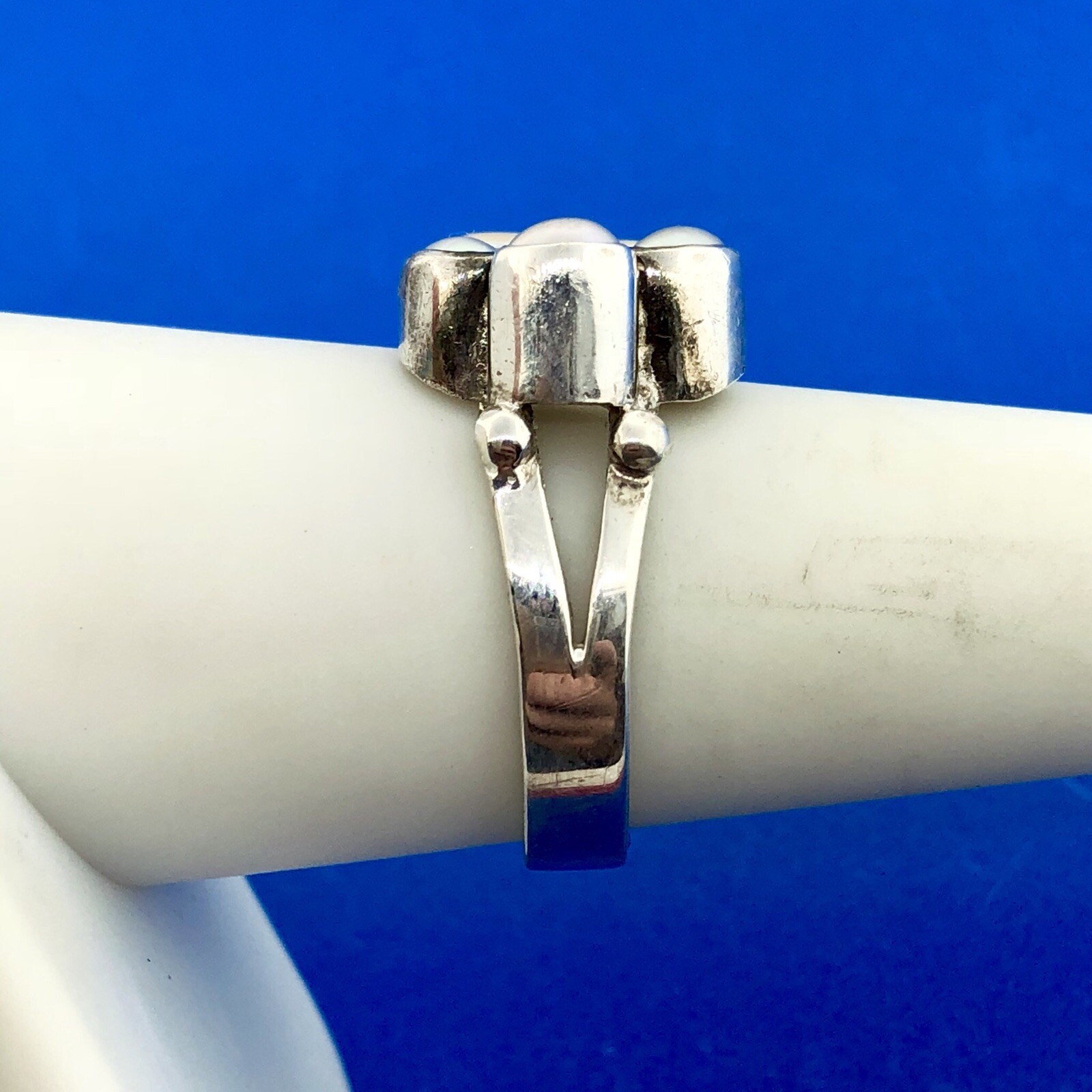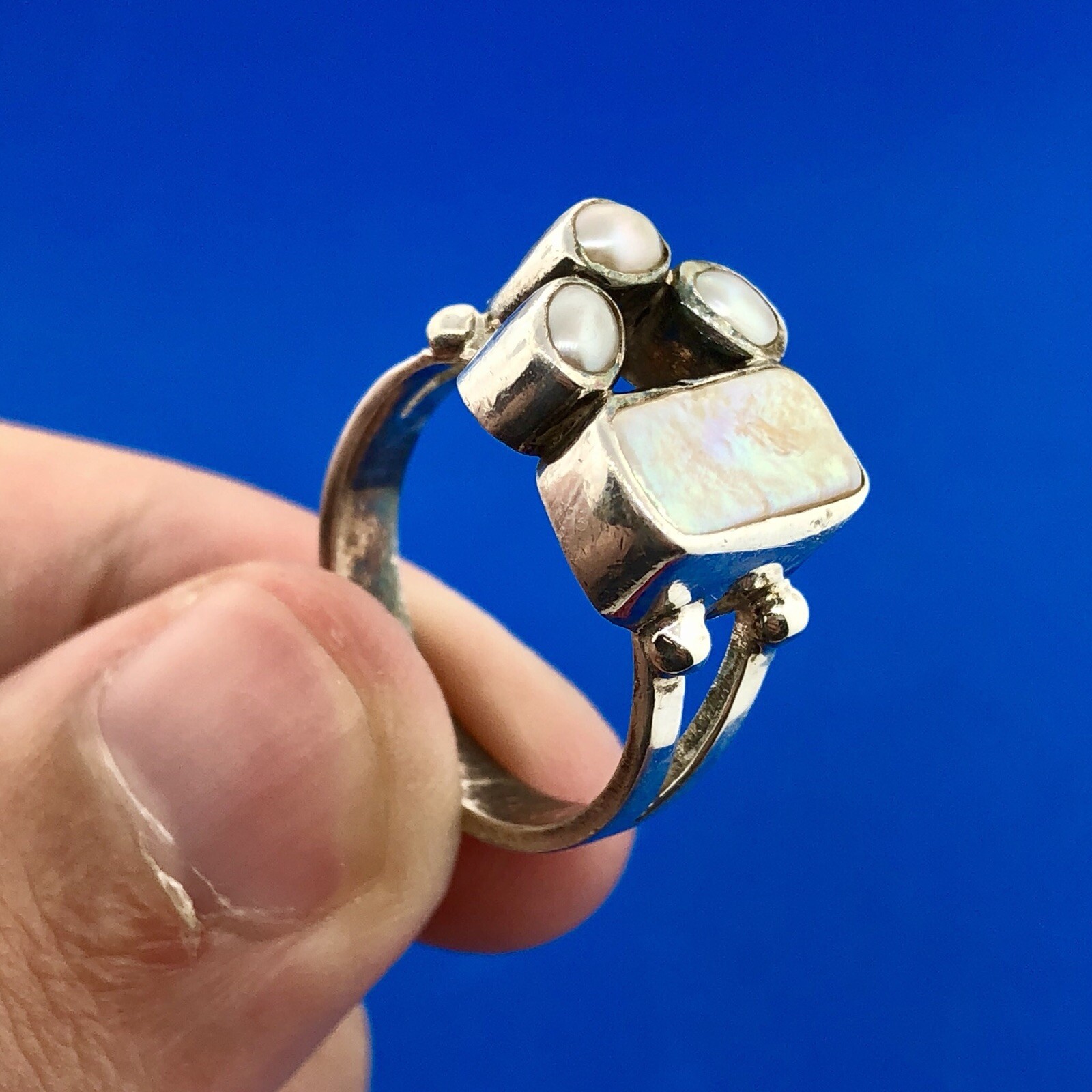 как выглядит Sterling Silver 925 Freshwater Pearl Mother Of Pearl Cabochon Free Form Ring фото