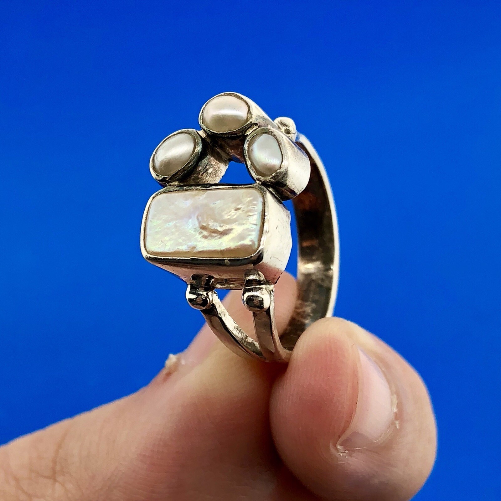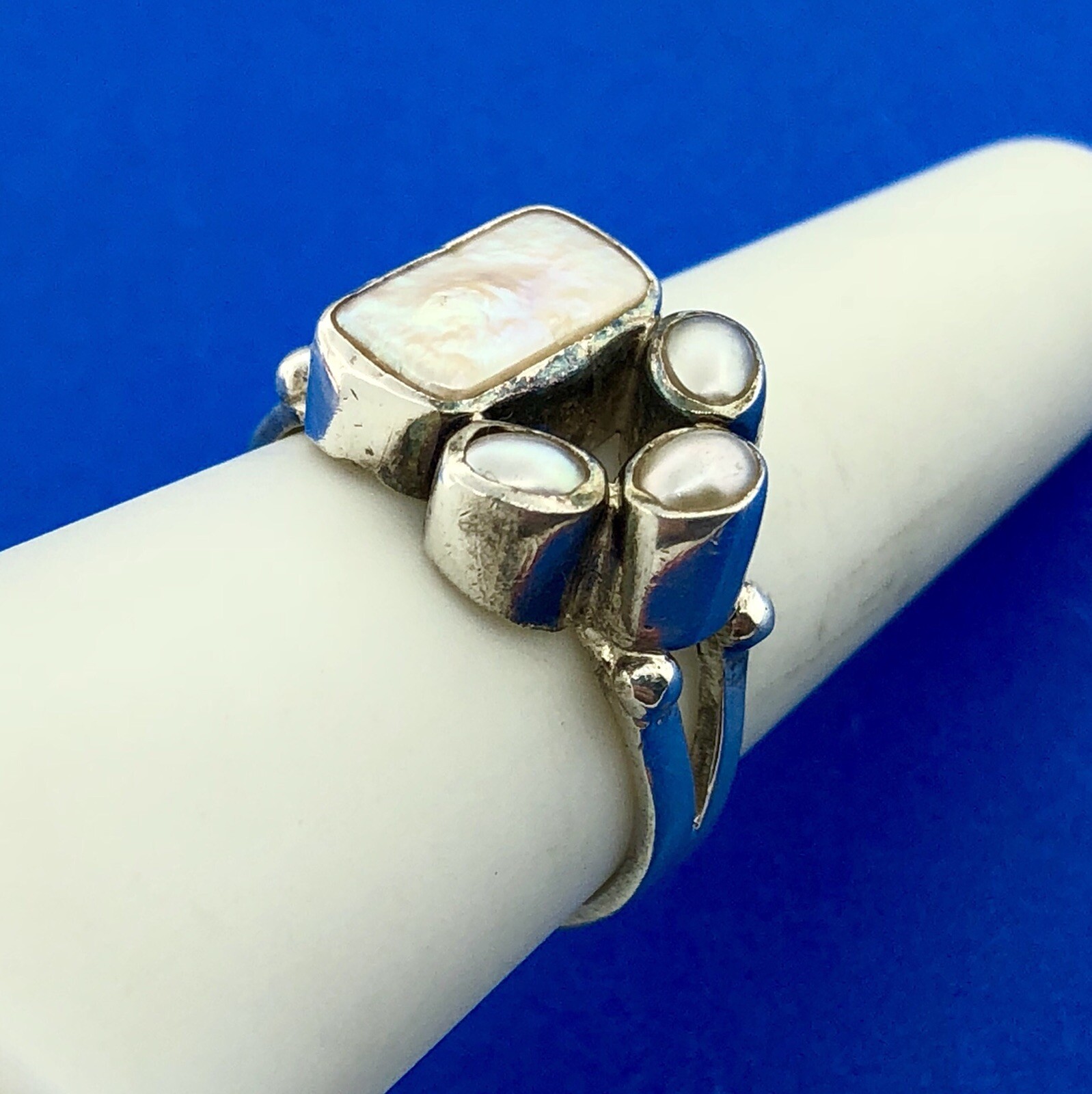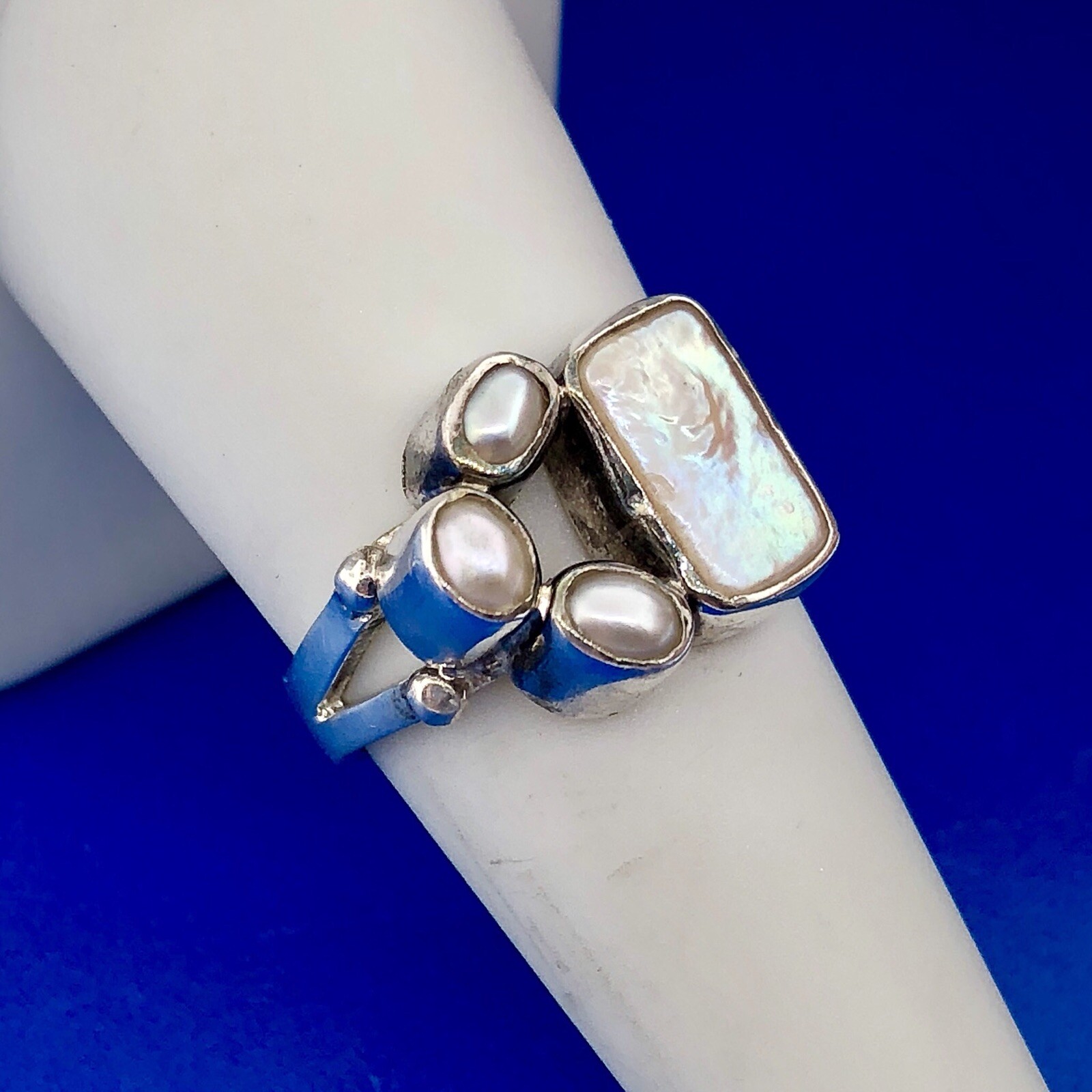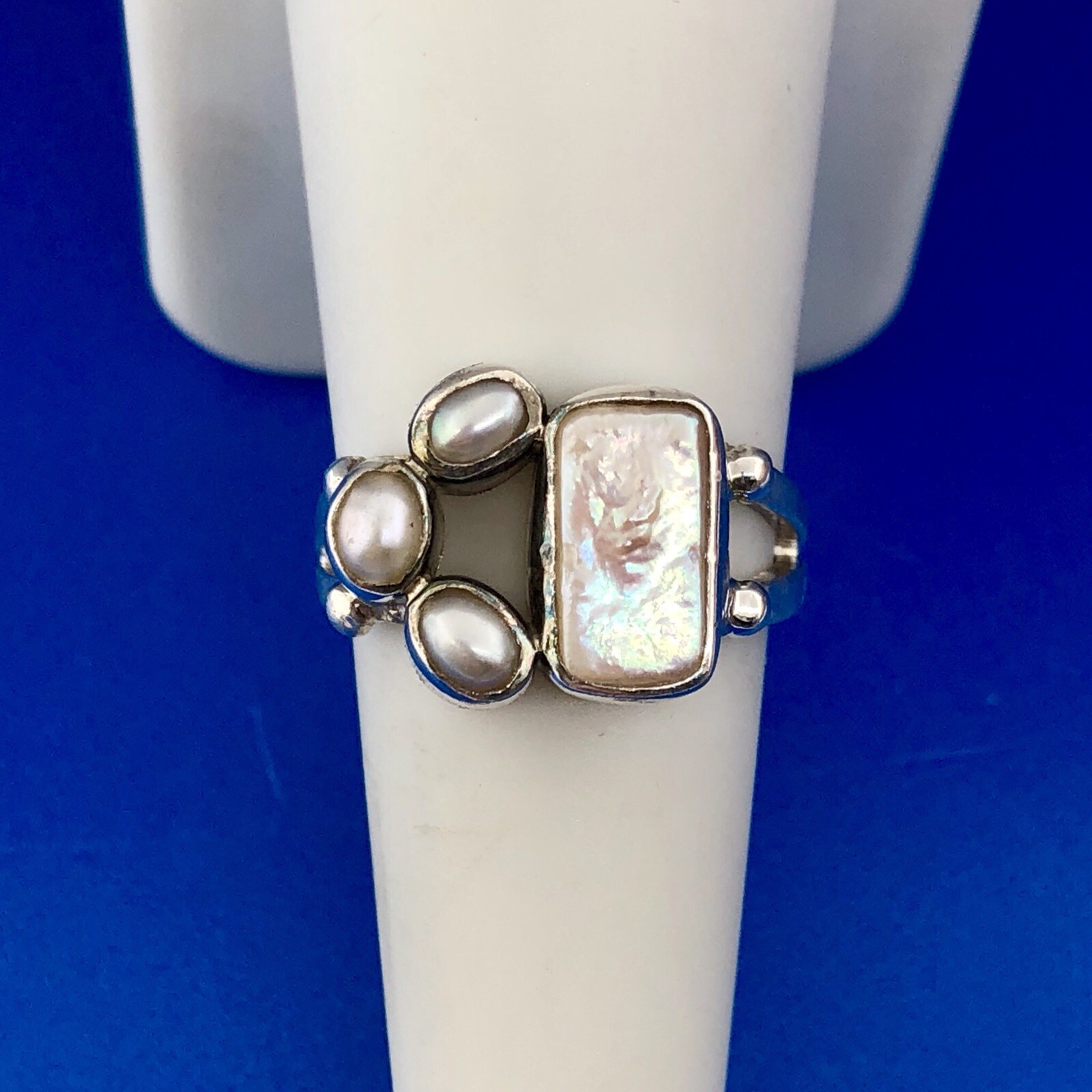 Sterling Silver 925 Freshwater Pearl Mother Of Pearl Cabochon Free Form Ring