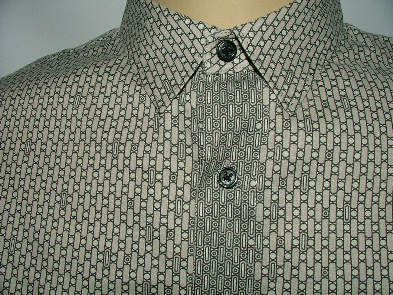 как выглядит MENS ELIE TAHARI CASUAL SHIRT SIZE L 100 COTTON GRAY WHITE GEOMETRIC 170 фото