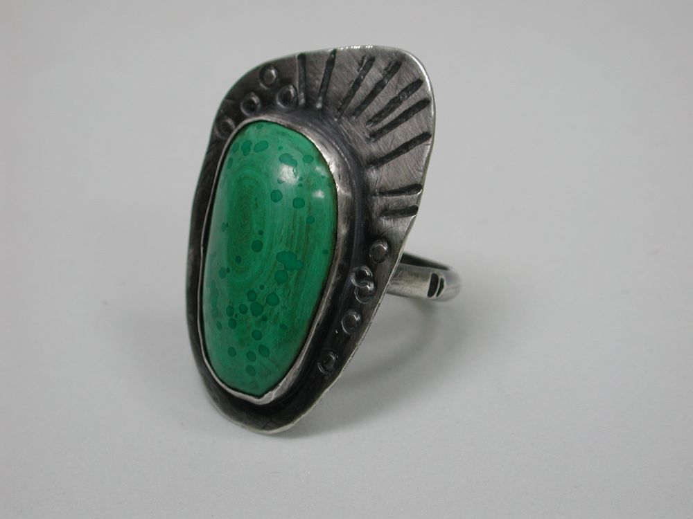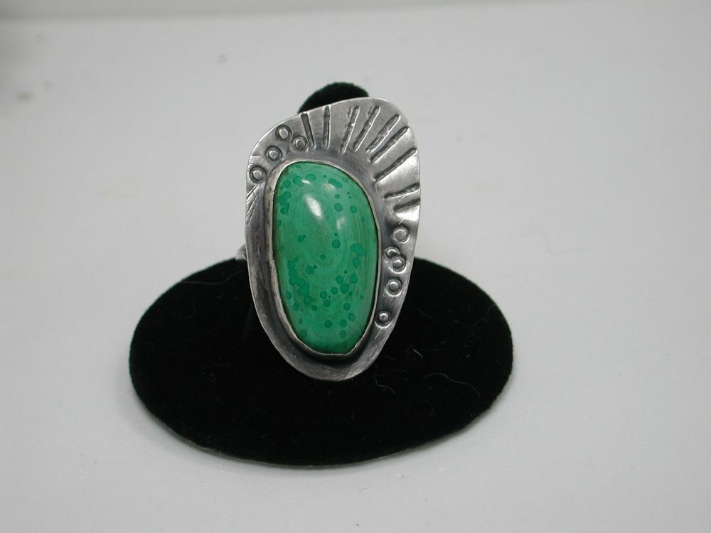 как выглядит Artsy Malachite Sterling Silver Ring, Artisan Handmade in USA Size 9 фото