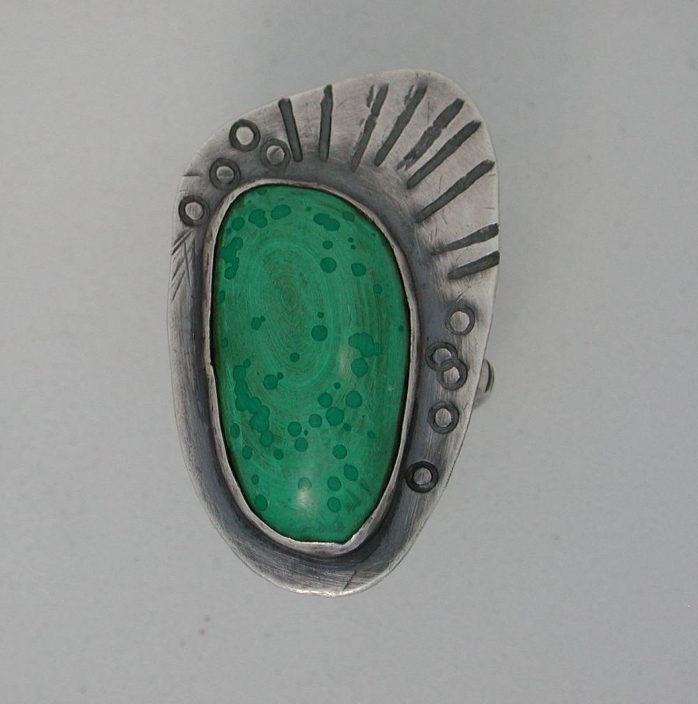 Artsy Malachite Sterling Silver Ring, Artisan Handmade in USA Size 9