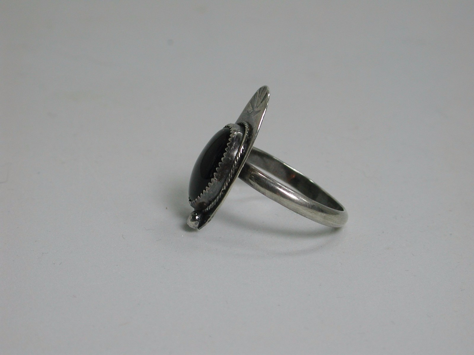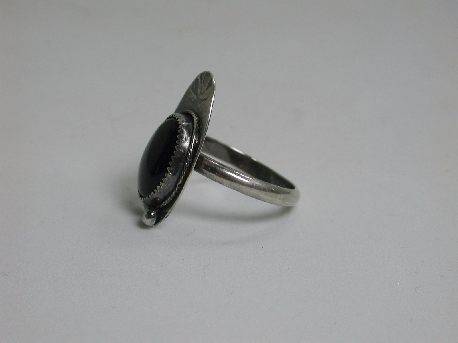 Sterling Silver Ring with Black Onyx, Artisan Handmade Metalwork Jewelry