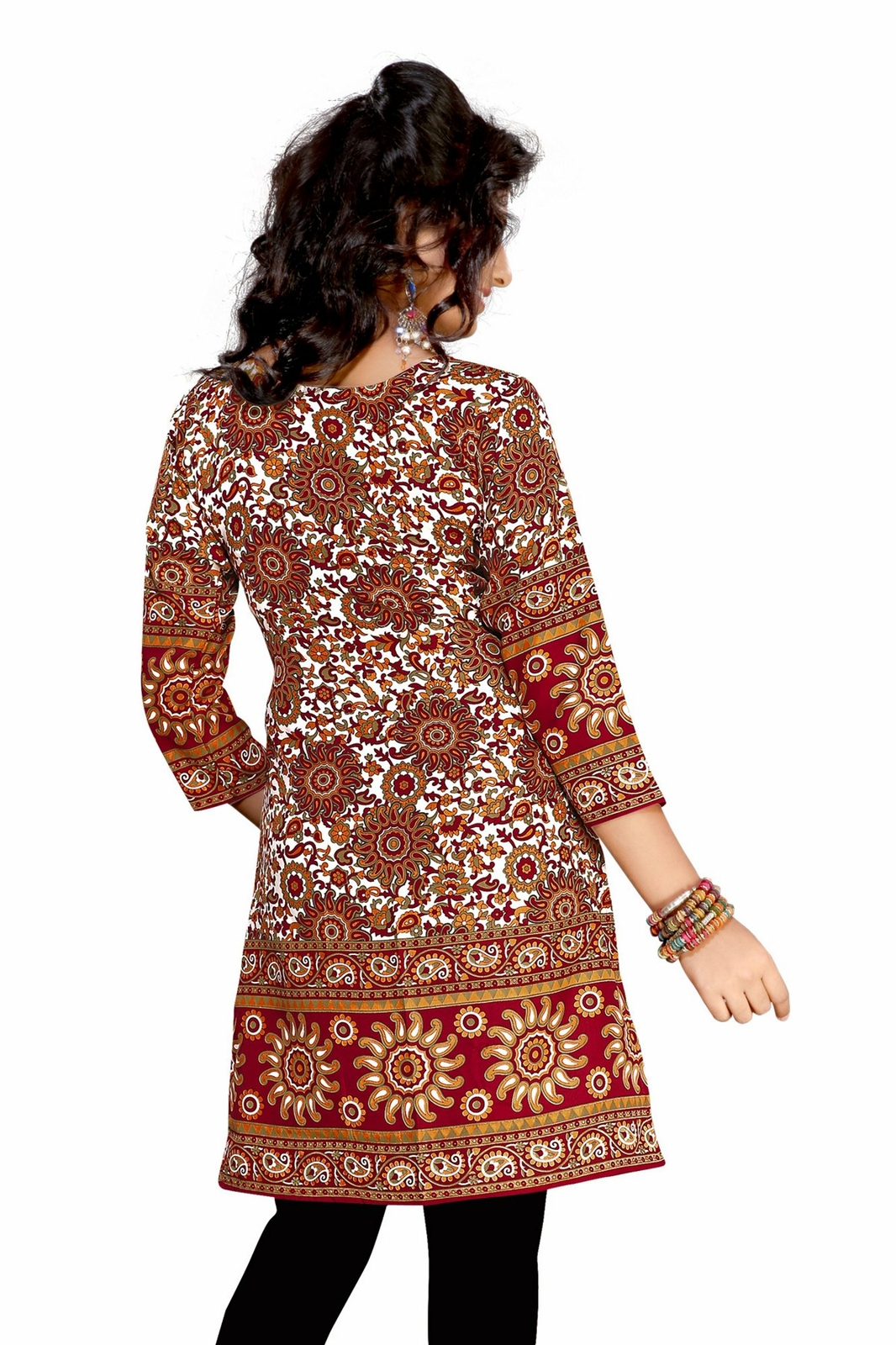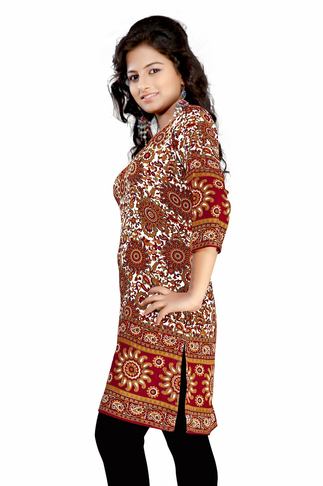 Maroon 3/4 sleeve Indian Printed Kurti Tunic Women Kurta