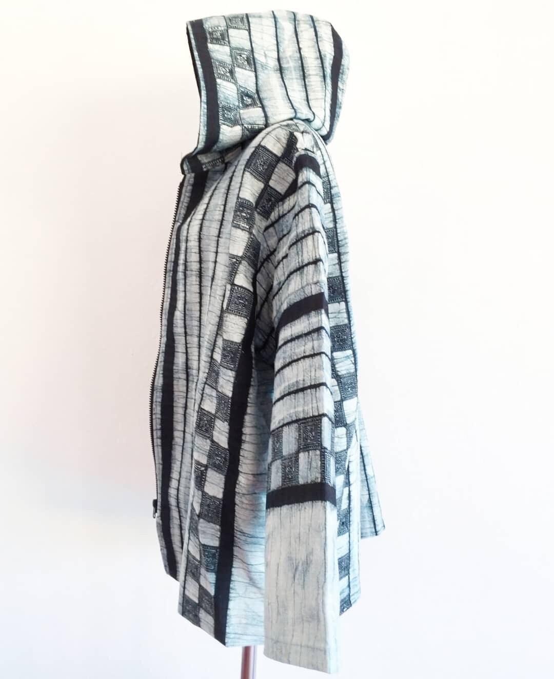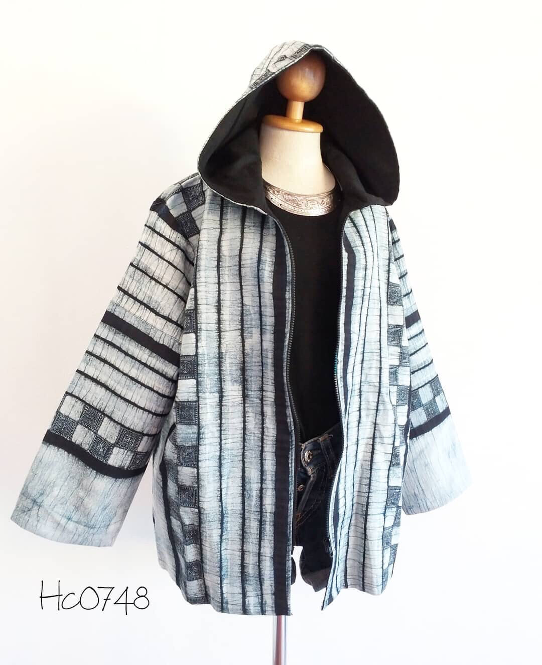 Hoodie Jacket Unisex Thai Hill Tribe Cotton Write Candles Indigo Dye Long Sleeve