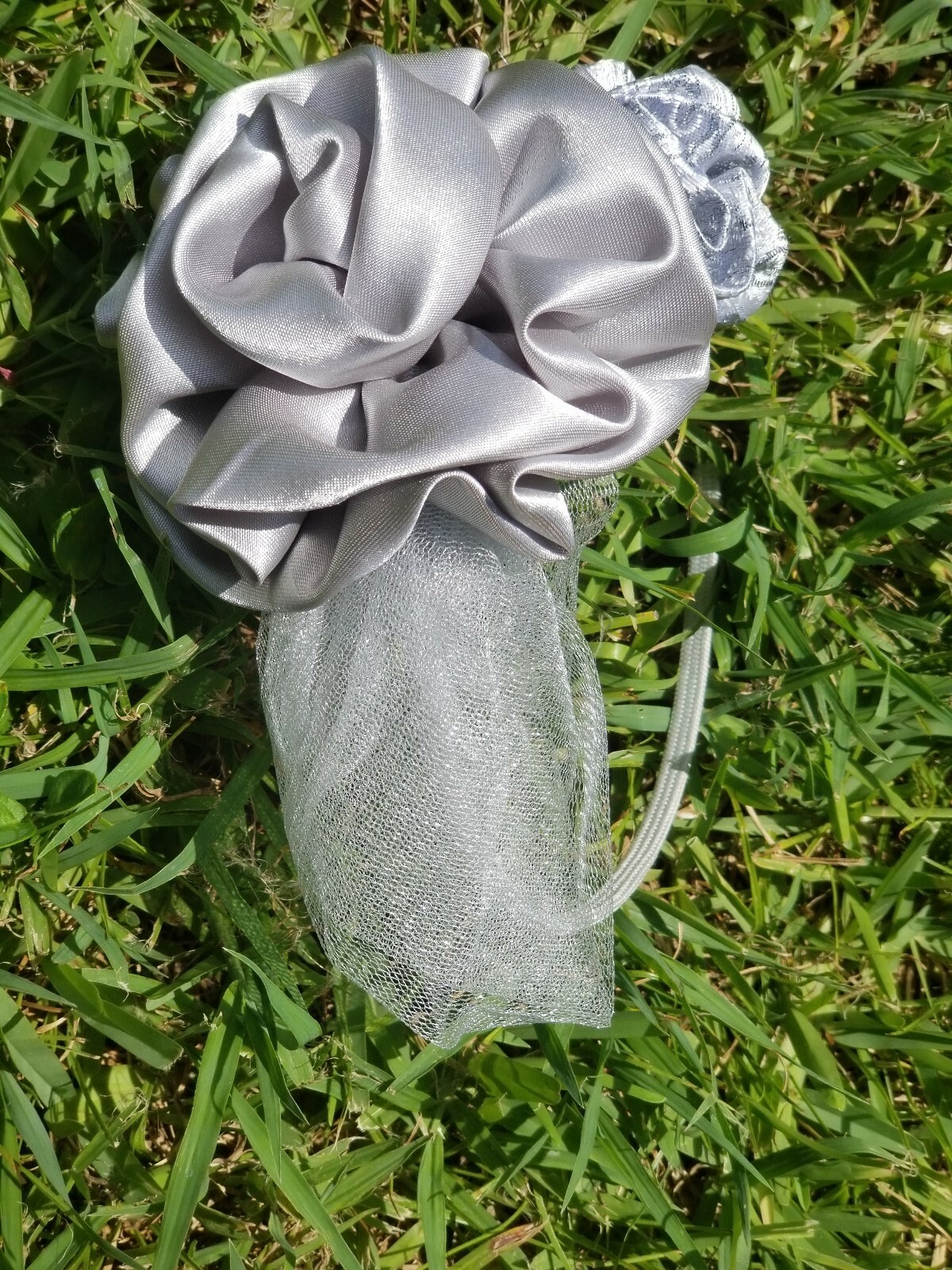 First Communion, Wedding, etc, handmade headband With Flowers Silver color