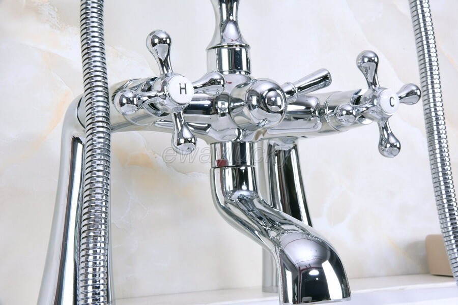 как выглядит Polished Chrome Deck Mount Clawfoot Bathtub Faucet Mixer Tap W/ Handheld Shower фото