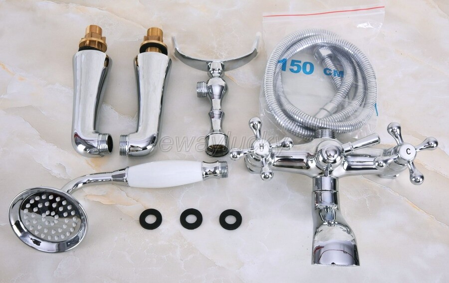 Polished Chrome Deck Mount Clawfoot Bathtub Faucet Mixer Tap W/ Handheld Shower