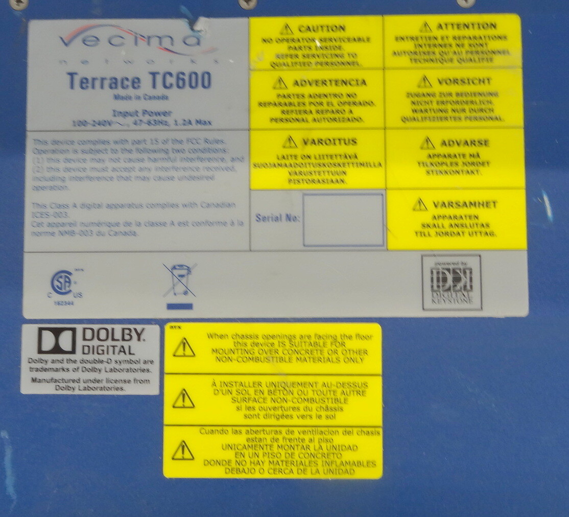 Vecima Network Terrace TC600 Multichannel QAM to Analog Rf Converter