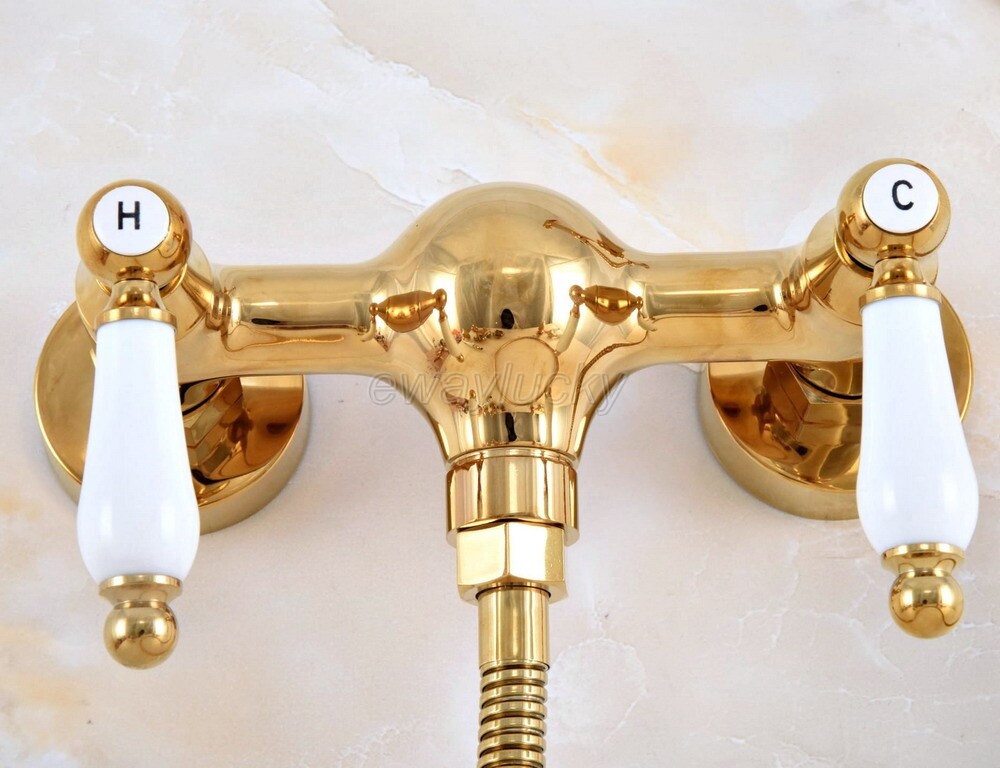 Gold Brass Wall Mount Bathroom Shower Faucet Hand Held Shower Mixer Tap Spray