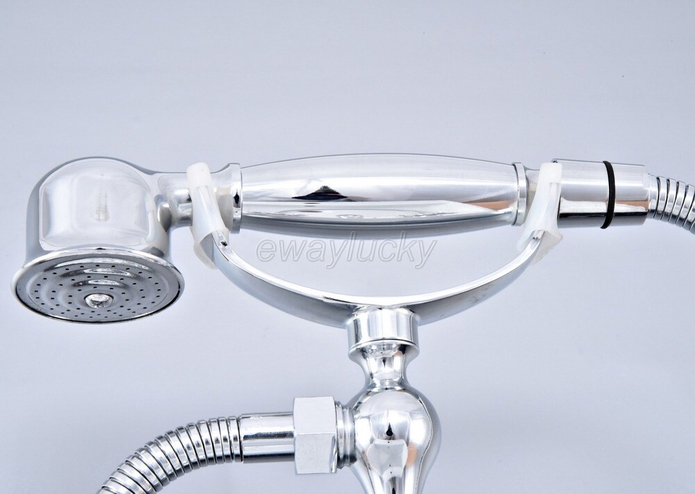как выглядит Deck Mount Polished Chrome Brass Bathtub Clawfoot Faucet Mixer Tap w/Hand Shower фото