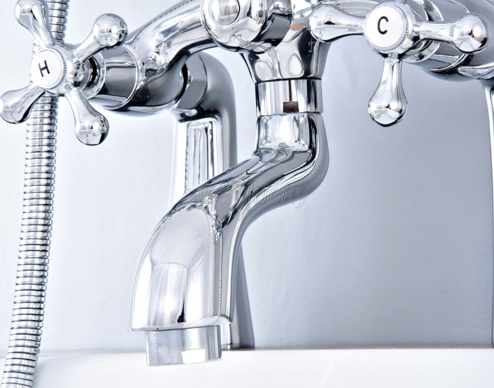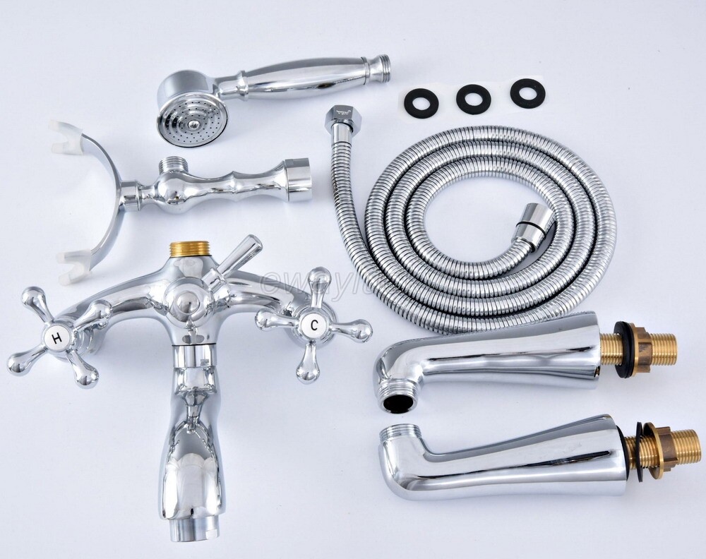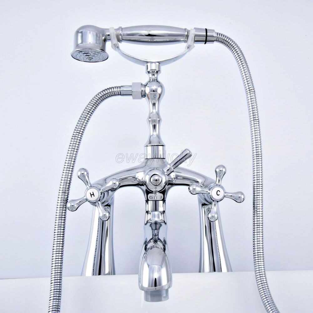 Deck Mount Polished Chrome Brass Bathtub Clawfoot Faucet Mixer Tap w/Hand Shower
