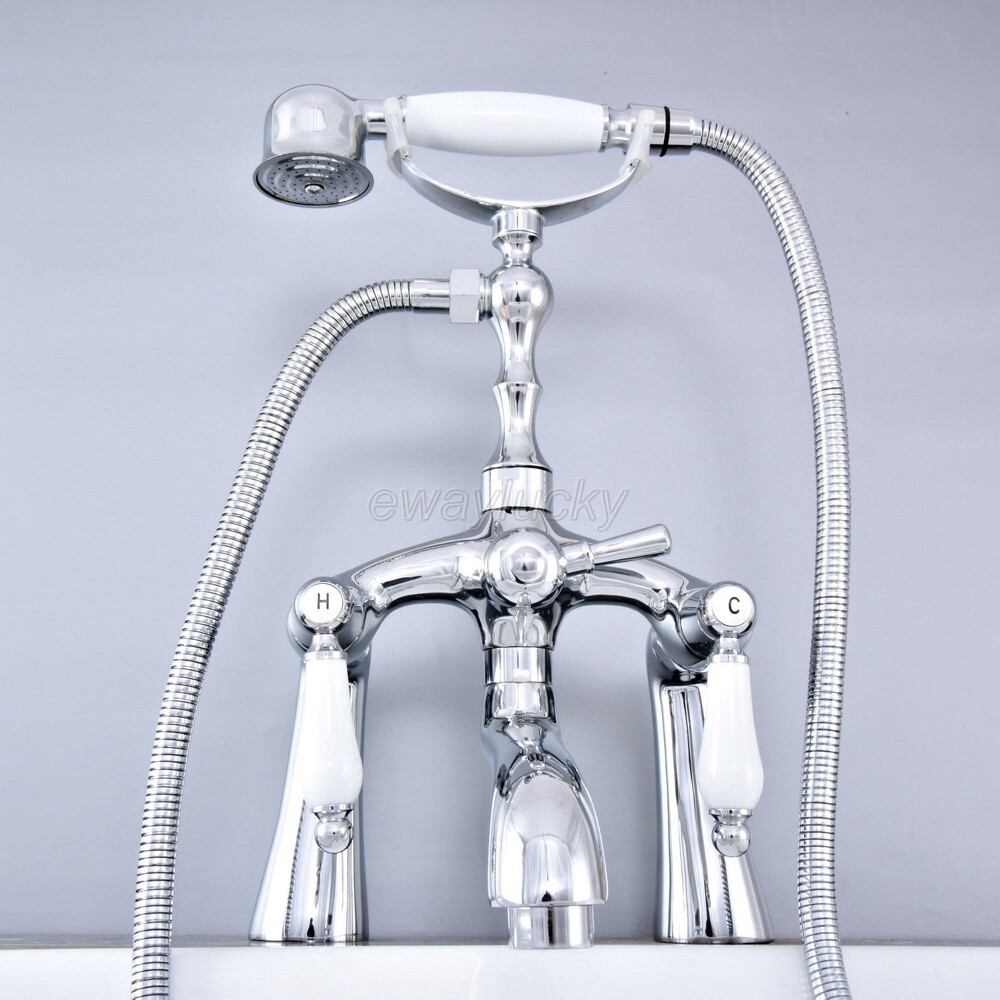 Deck Mount Polished Chrome Brass Bathtub Clawfoot Faucet Mixer Tap w/Hand Shower