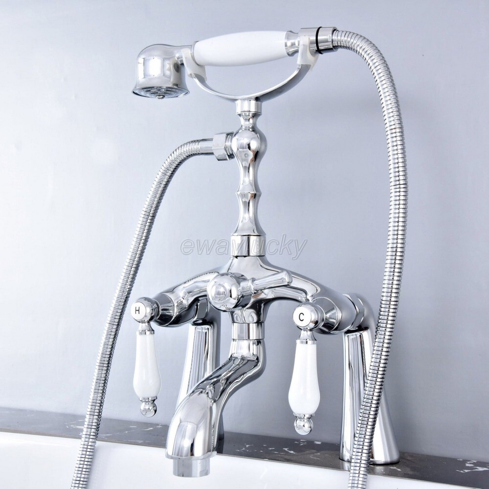 как выглядит Deck Mount Polished Chrome Brass Bathtub Clawfoot Faucet Mixer Tap w/Hand Shower фото