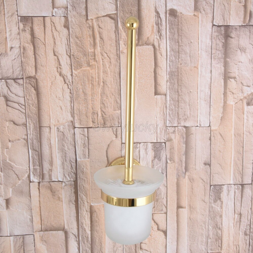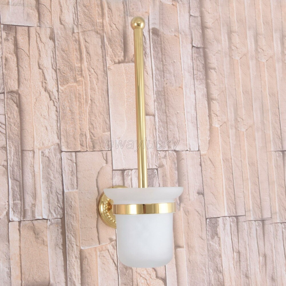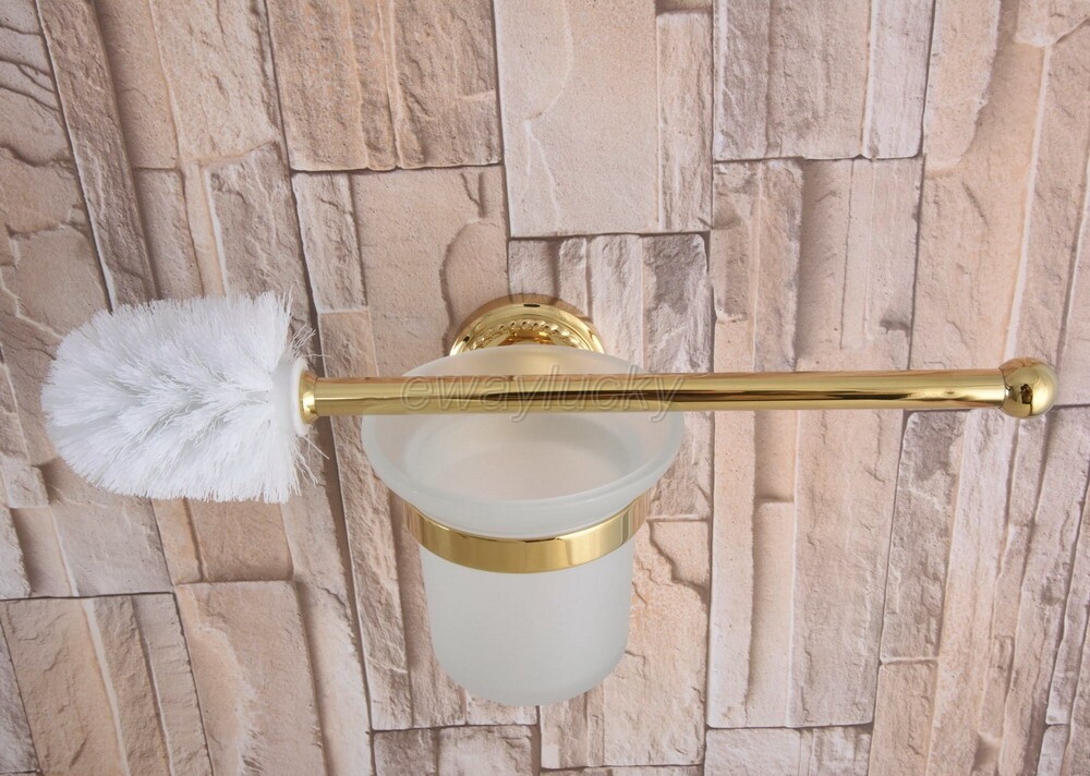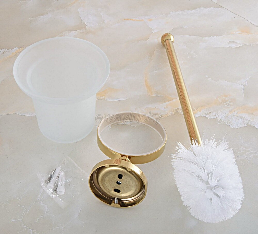 Gold Color Brass Toilet Brush Holder Set Bathroom Cleaning Accessories wba596