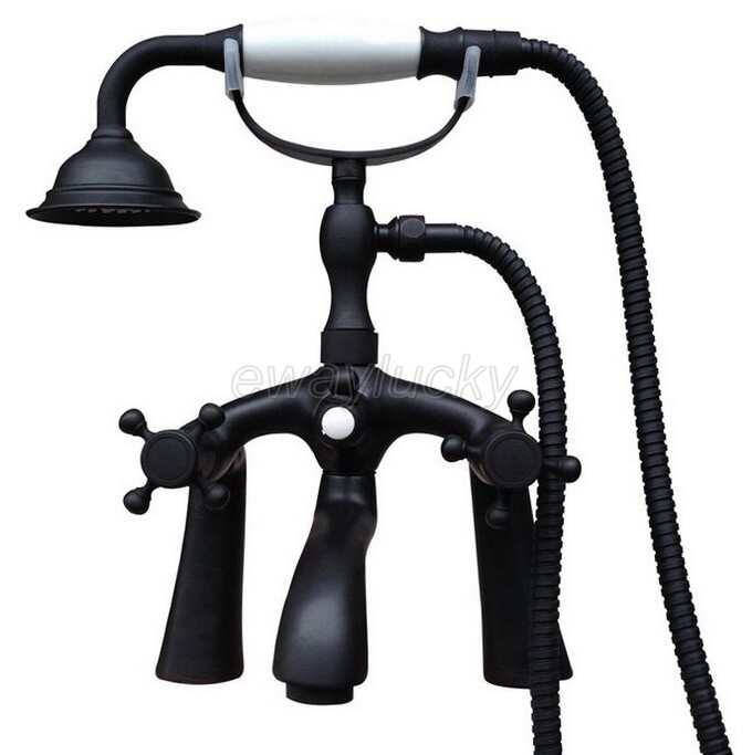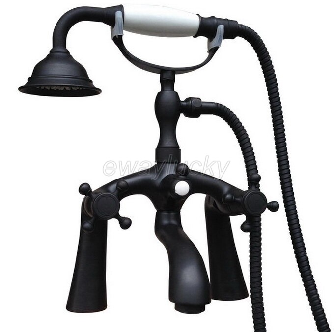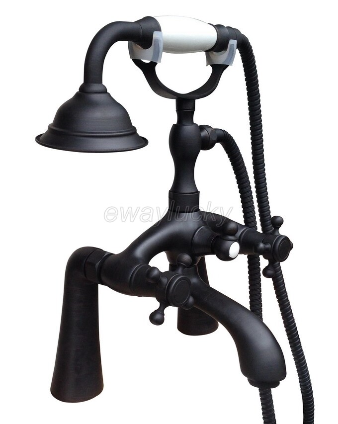 Oil Rubbed Bronze Deck Mount Clawfoot Bathtub Faucet W/ Hand Shower Mixer Tap