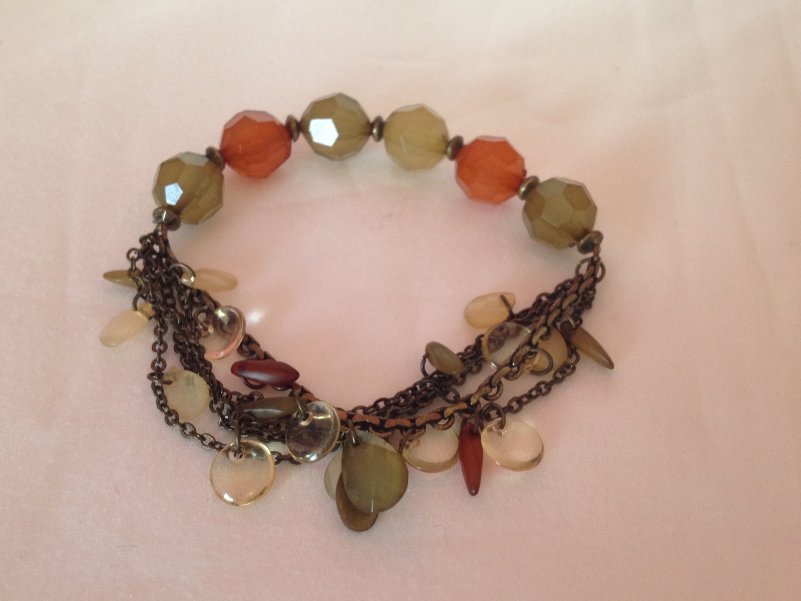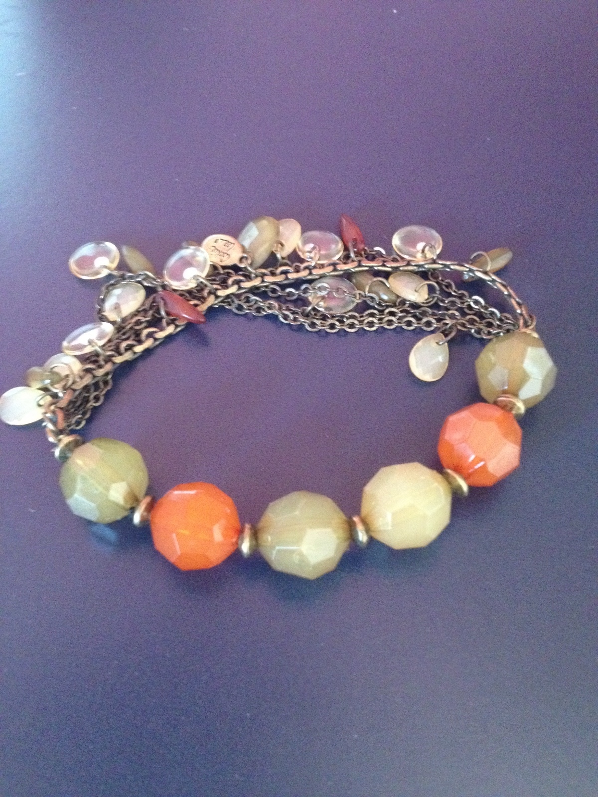 как выглядит Cookie LEE Gold Tone Orange Green Beads Stretch Stand Bracelet New фото
