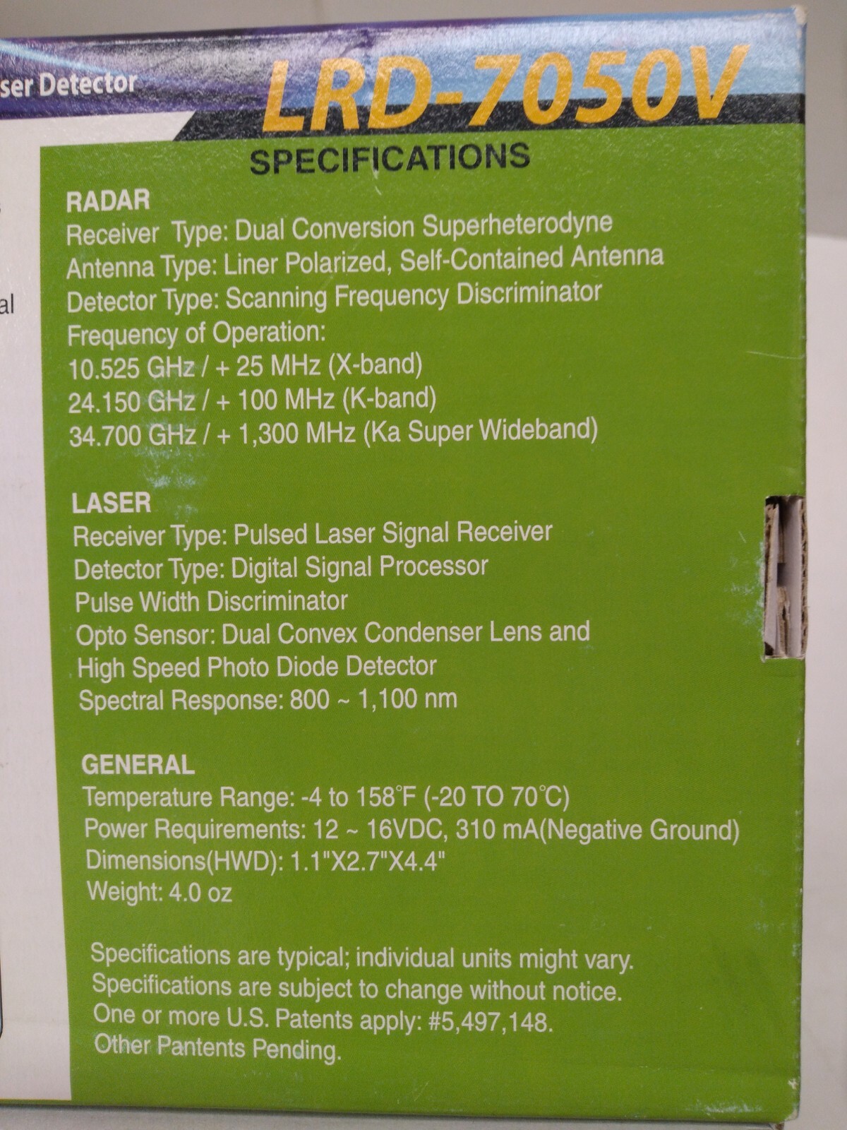 Early Warning LRD-7050v Front Rear Safety Radar and Laser Detector New in Box